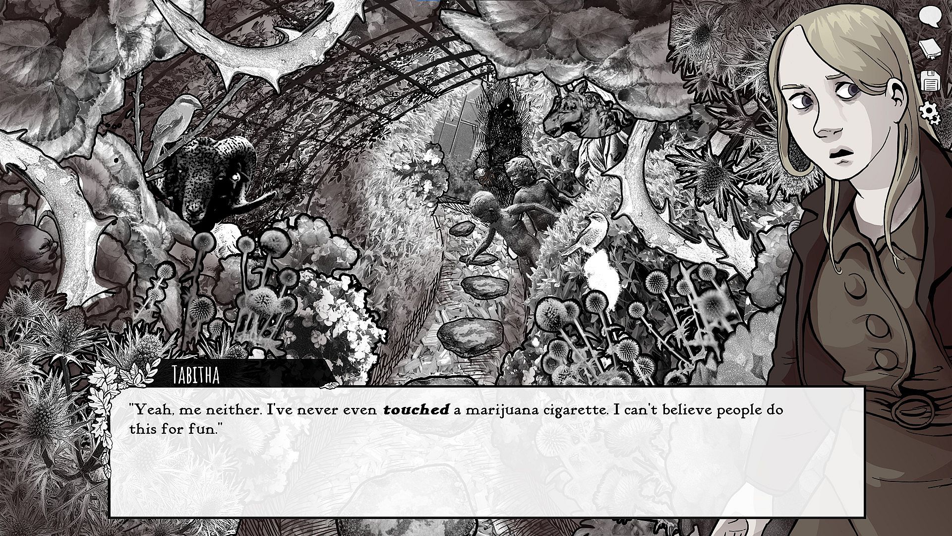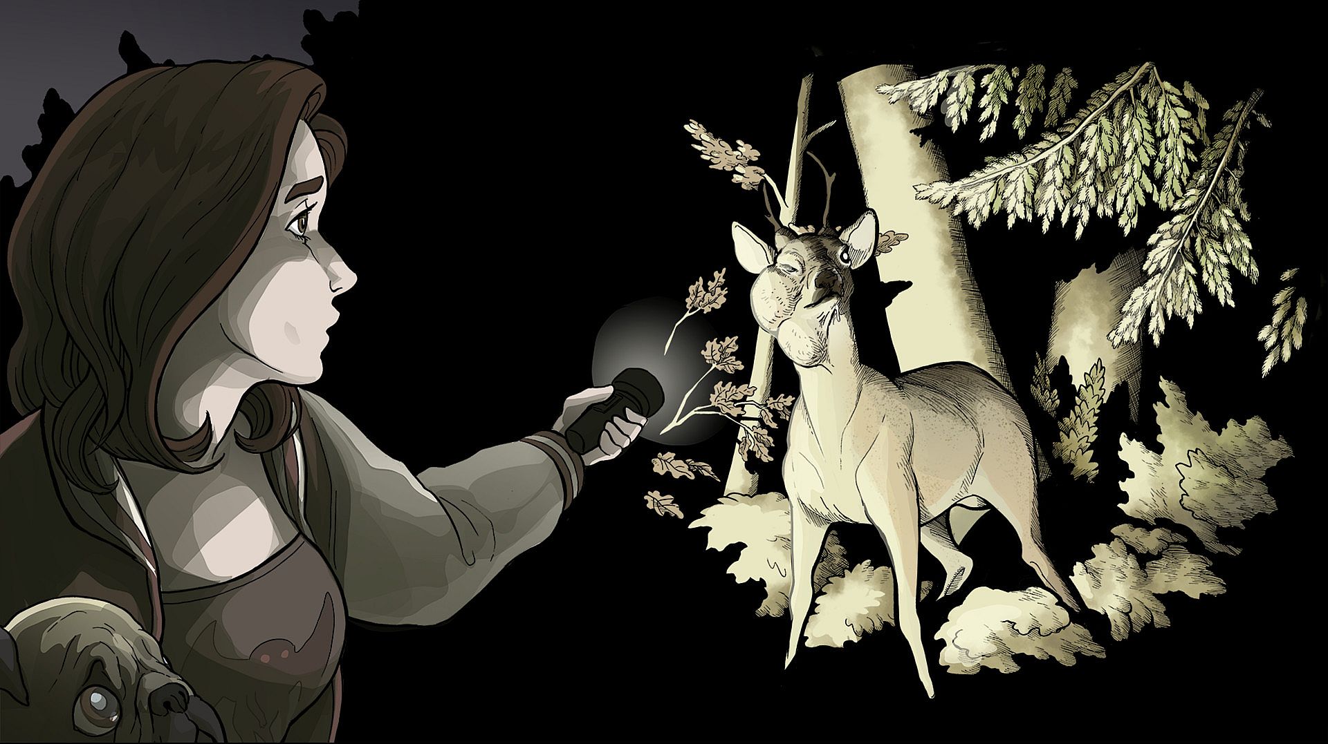 Hundreds of meticulously hand-drawn and traditionally inked backgrounds. Every background in the game is hand drawn and inked by Ignatz-winning graphic novelist Abby Howard.
