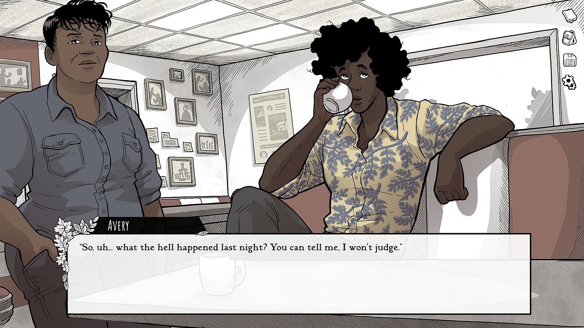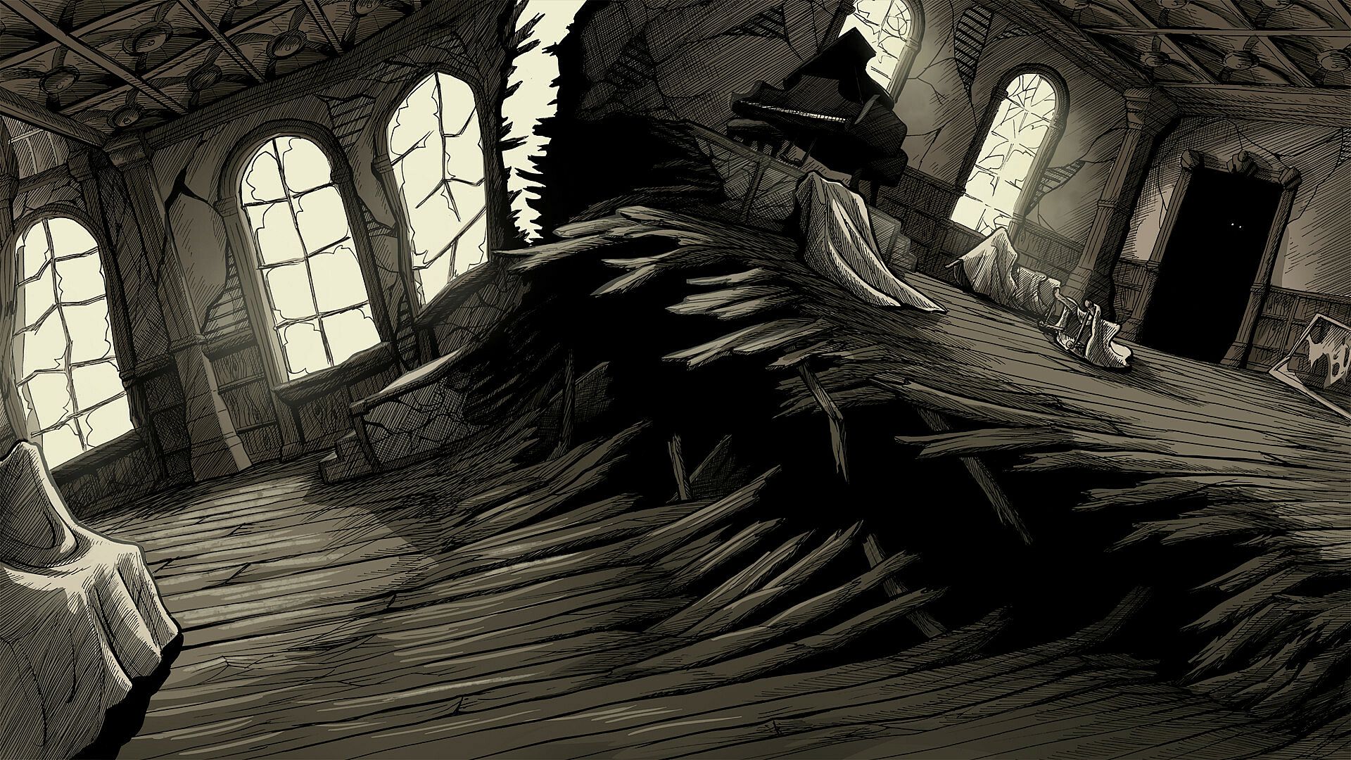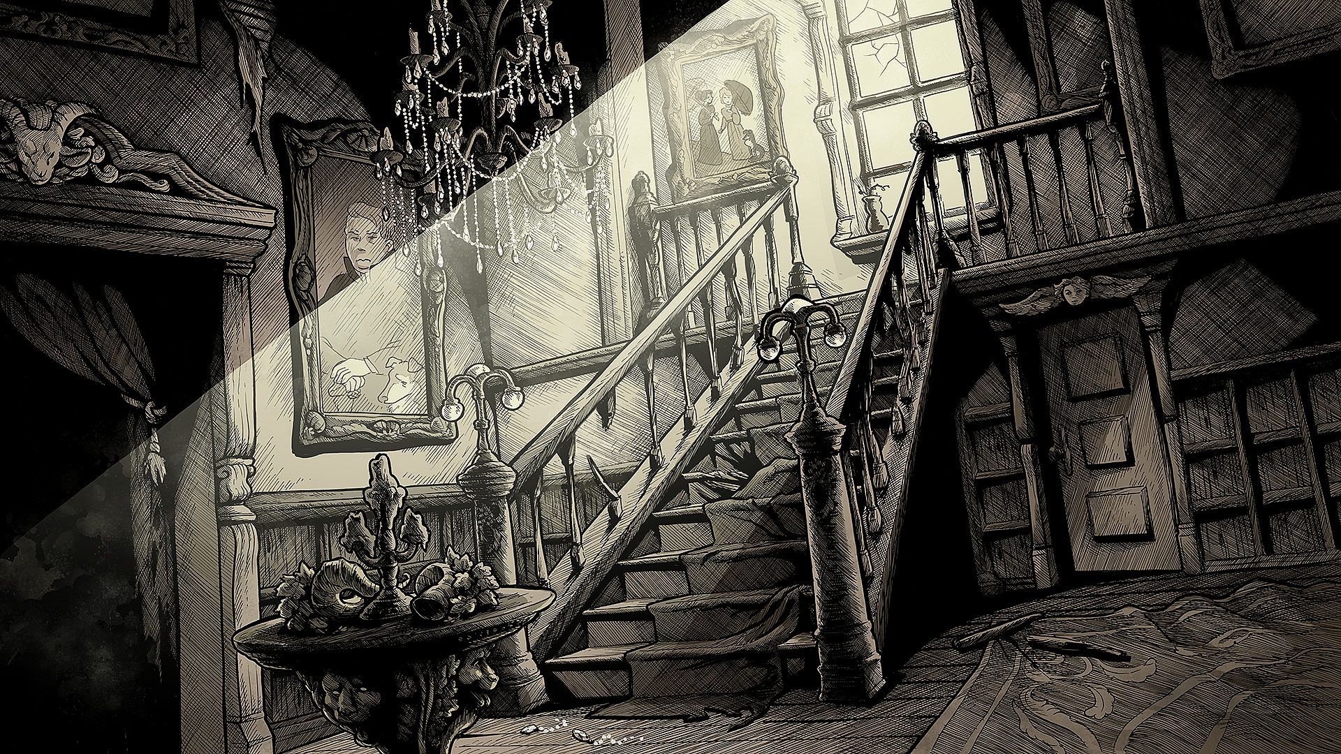 - Dozens of meticulously hand-drawn and traditionally inked backgrounds. Every background in the game is meticulously drawn by hand and inked on massive 19x24 inch paper.