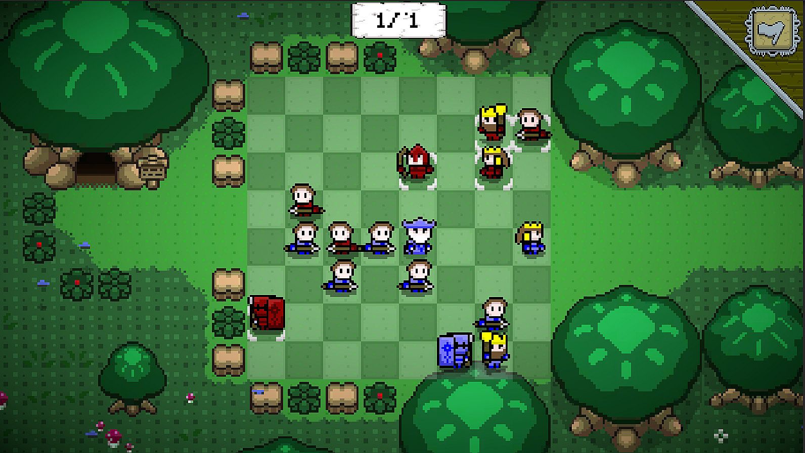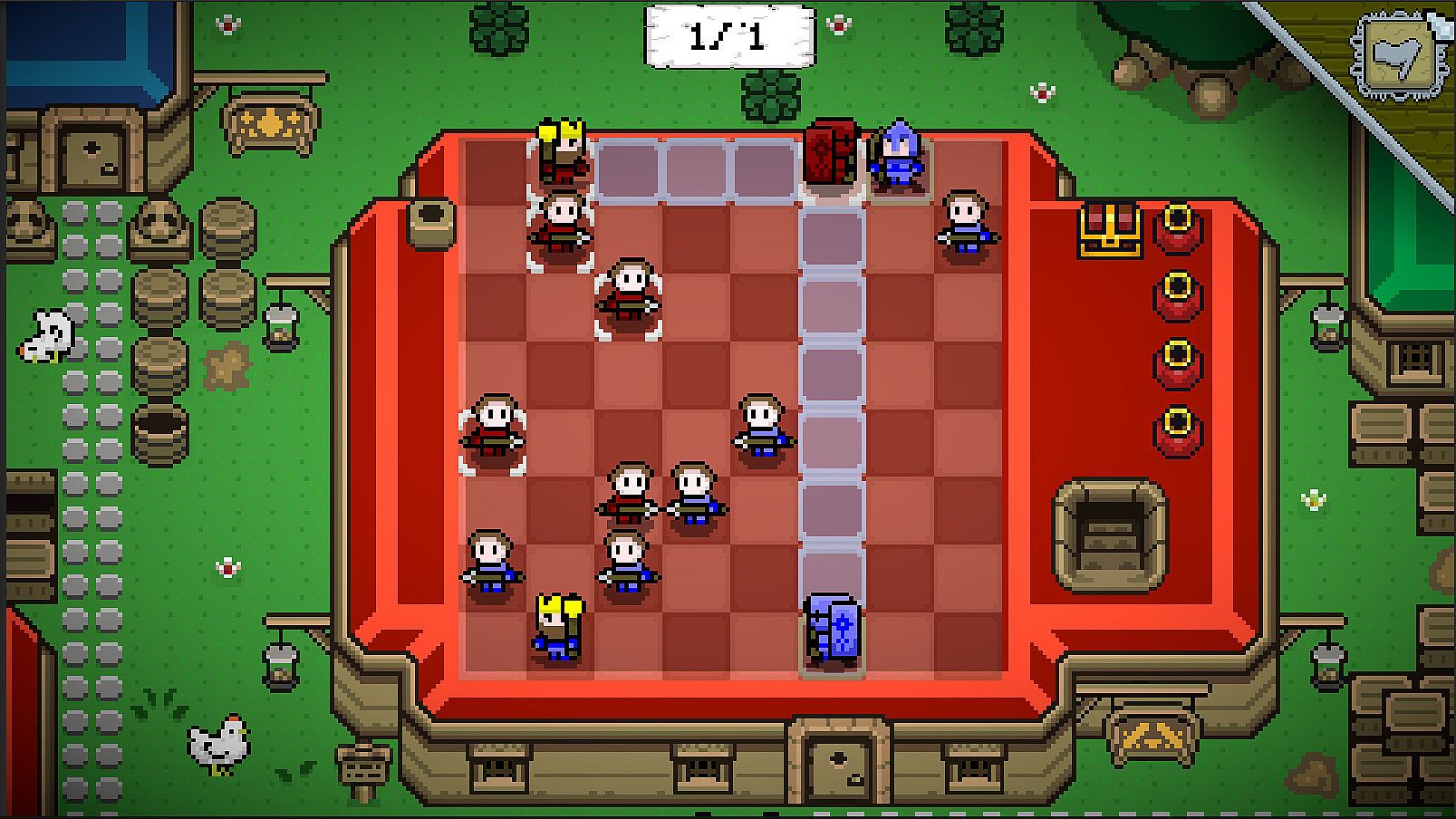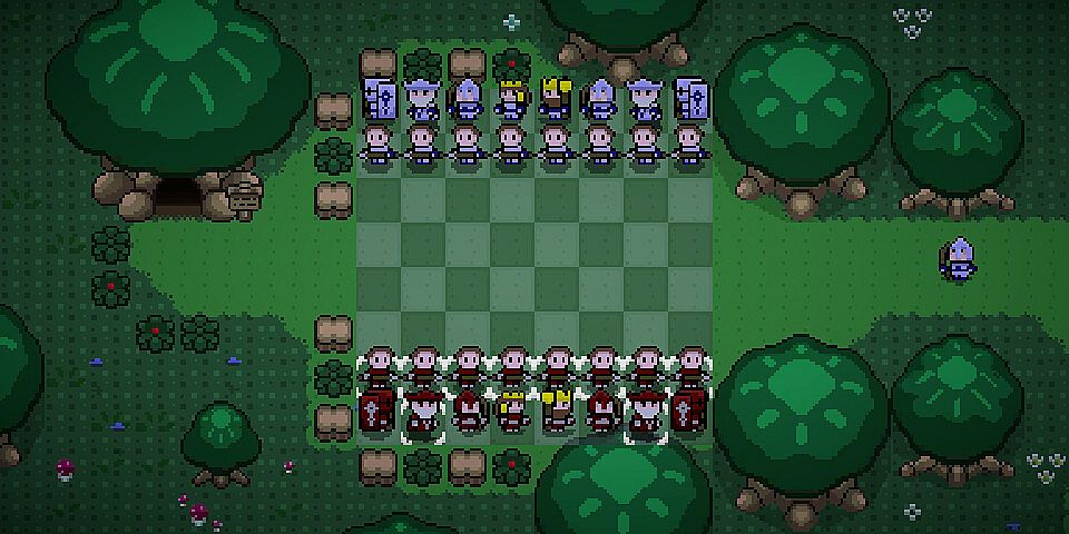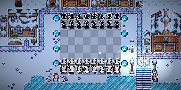 You have 12 handcrafted boards to unlock and play on, all in the style of 90s JRPGs. The levels differ from cozy woods or small towns up to icy woods.