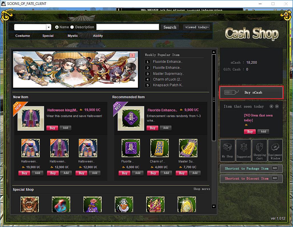 In game, Players will be able to start journey with various helpful premium items which can be purchased on inventory column.