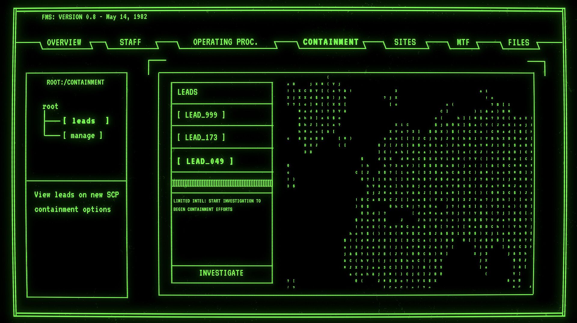 From your very own Facility Management System, on your cutting edge CRT monitor control your foundation and issue construction orders, change site procedures, and manage the research (and containment) of your SCPs.