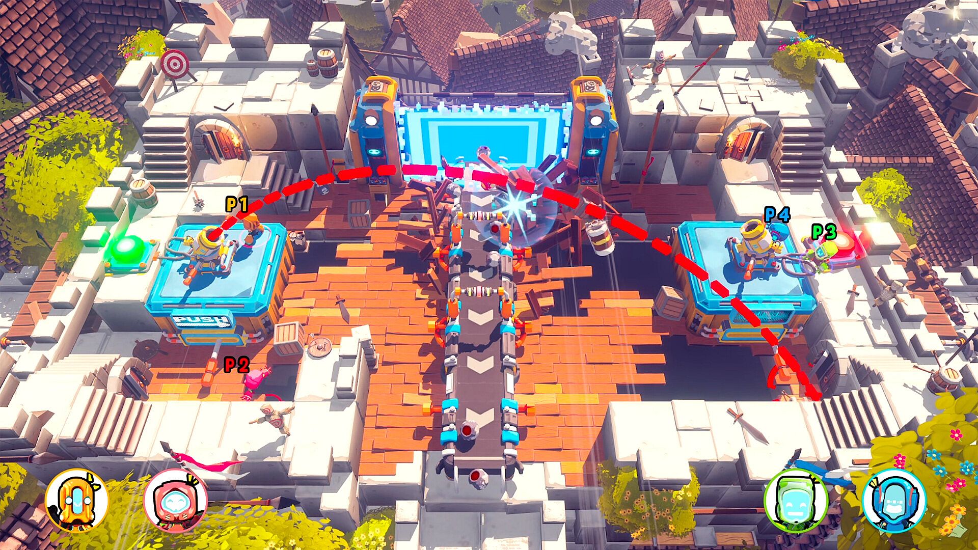 Play with 3 friends and compete in a sequence of mini-games with constantly shifting teams. Either in 1 versus all, 2 against 2 or in a free for all, never loose sight of your one and only objective, fight for victory !