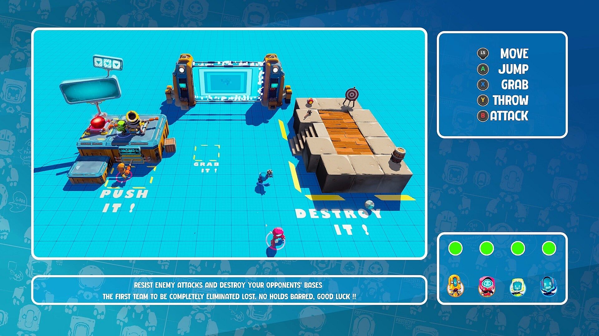 Play a succesion of mini-games with your friends in the gamemode SCRAPS KING, and try to become the first one to win 5 artifacts to be awarded the title of ROBOT OF THE MONTH by the "inventor" !