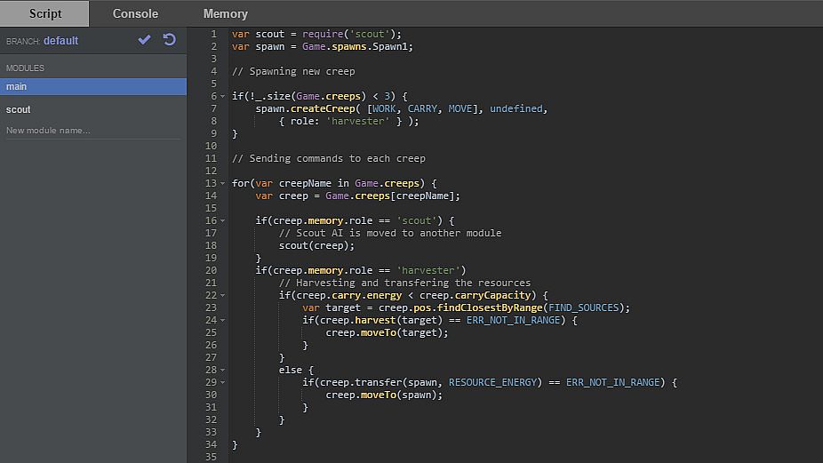 Screeps is developed for people with programming skills. Unlike some other RTS games, your units in Screeps can react to events without your participation – provided that you have programmed them properly. And, unlike other MMO, you do not have to play Screeps constantly to play well. It is quite enough just to check once in a while to see if everything goes well.