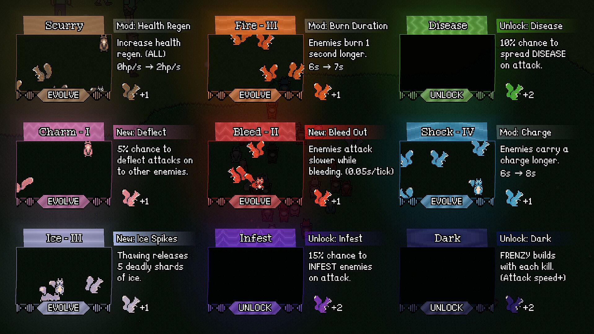 Grow your scurry however you see fit. There are endless ways to push the odds in your favor. Mix-and-match or take a purist's approach, the results are always devastating. You never know what kind of build might yield new forms of destruction.