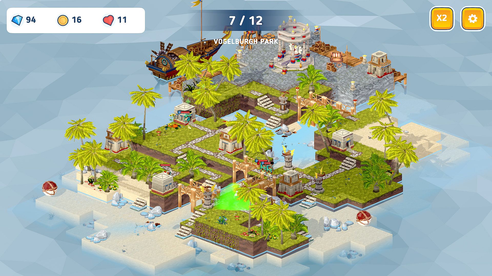 Blissful life in Solarimere archipelago is in danger. Barbaric Aquator tribe is invading peaceful Aerian lands! Join officers of Queen Albina in their struggle to repel Aquator invasion. Build and upgrade defensive structures, place traps, manage resources strategically and fling attackers across the sky!