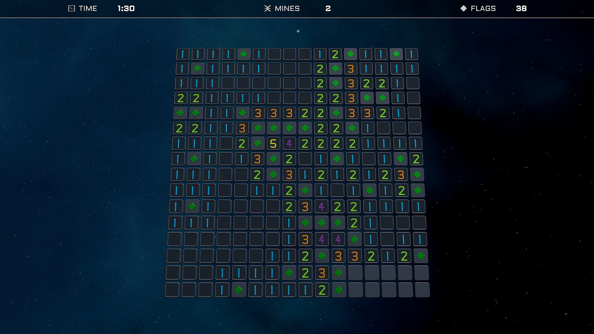 The classic Minesweeper experience launched into a 3D space environment. Strategically reveal cells against a backdrop of stars and nebulae to beat your best times. Play the traditional beginner, intermediate, and expert difficulties or take control and create your own board in the custom mode.