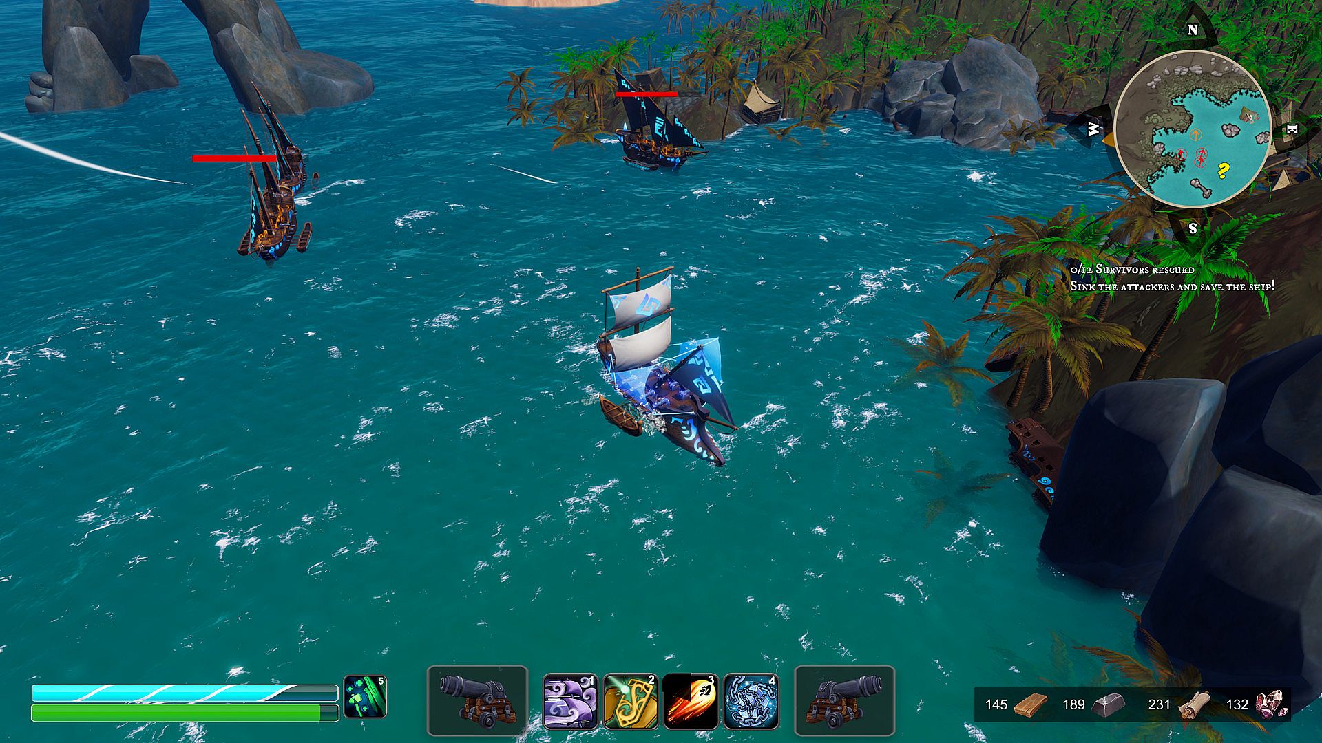 Fast paced naval action, employ magical boosts and traps to outwit your enemies while you launch full broadsides and magical Fireballs at will.