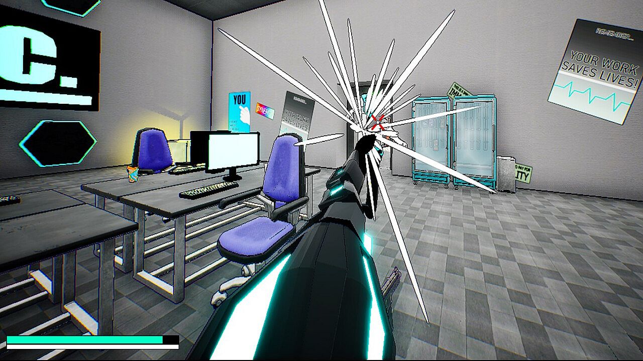 No ammo? No Problem! Everything is a bullet if you throw it hard enough. When your gun runs dry, there's another one waiting for you in the arms of the nearest enemy. Weave in and out of combat, juggling the security team's whole arsenal in the process. With over 15 guns to pick up, ranging from pistols to snipers and rifles to grenade launchers, you'll always be able to pack a punch. If you ever find yourself without a weapon, just "convince" the nearest employee to lend you theirs with a swift kick to the mouth.