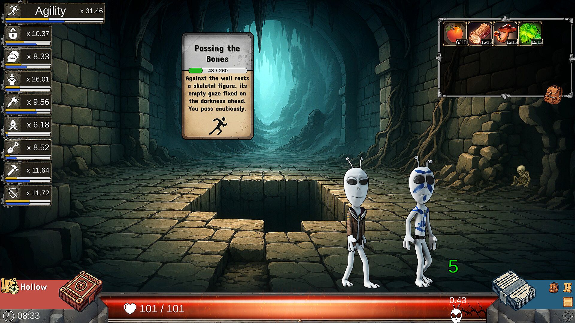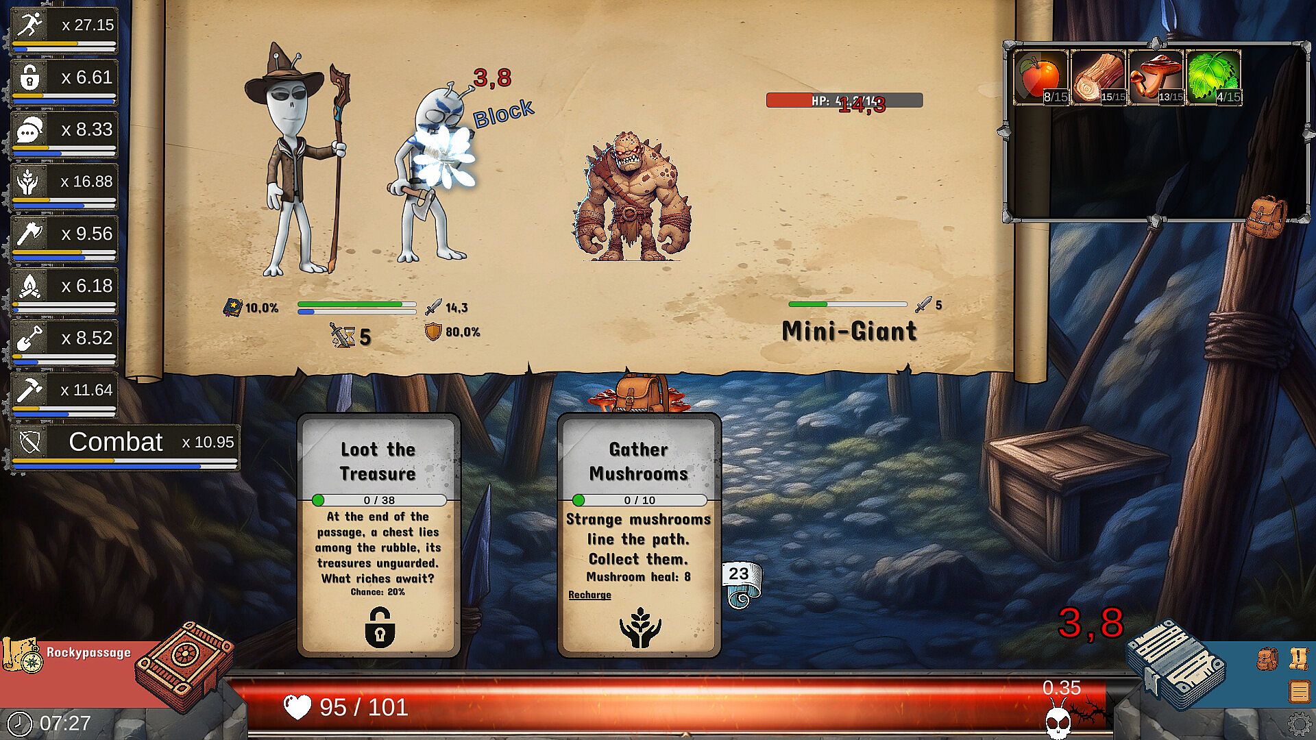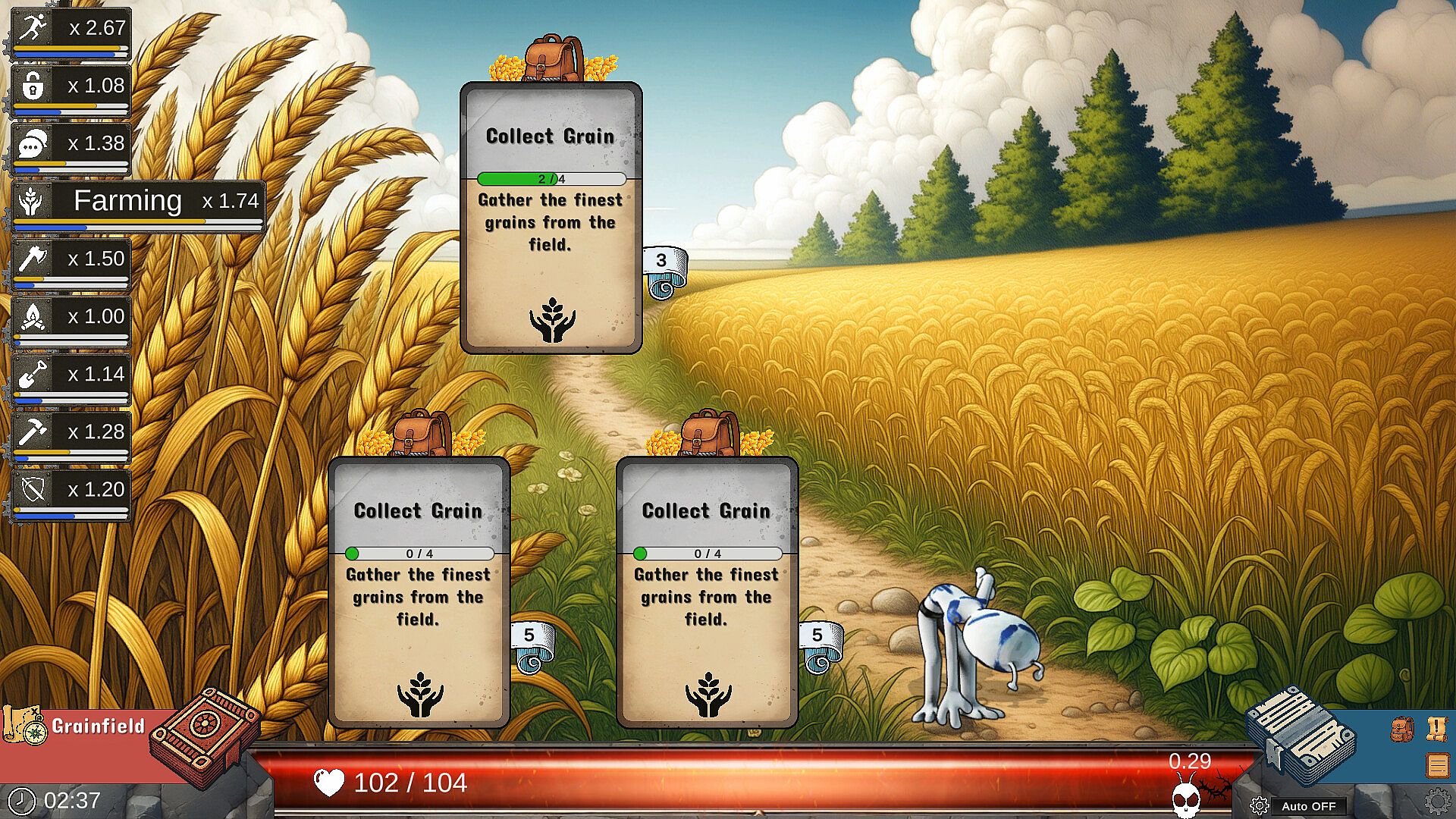Every card is linked to a skill. Chop wood to improve Woodcutting. Run to boost Agility. The more you do something, the better your character gets at it. Trained skills help you progress faster in future runs.