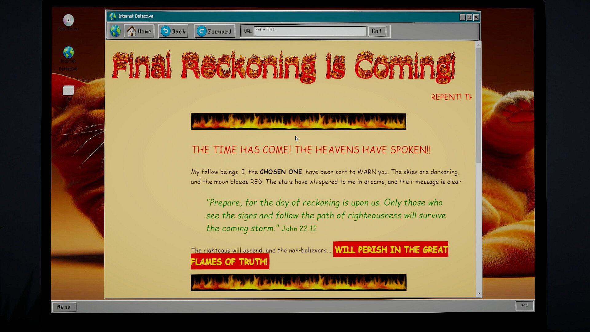 Explore an internet of 1997. You have unlimited access to a hand-crafted internet of 1997. Find games, fandoms, secret websites, and people's real online personas at 56kbps*. At least, once you disable that firewall that mom just set up.
