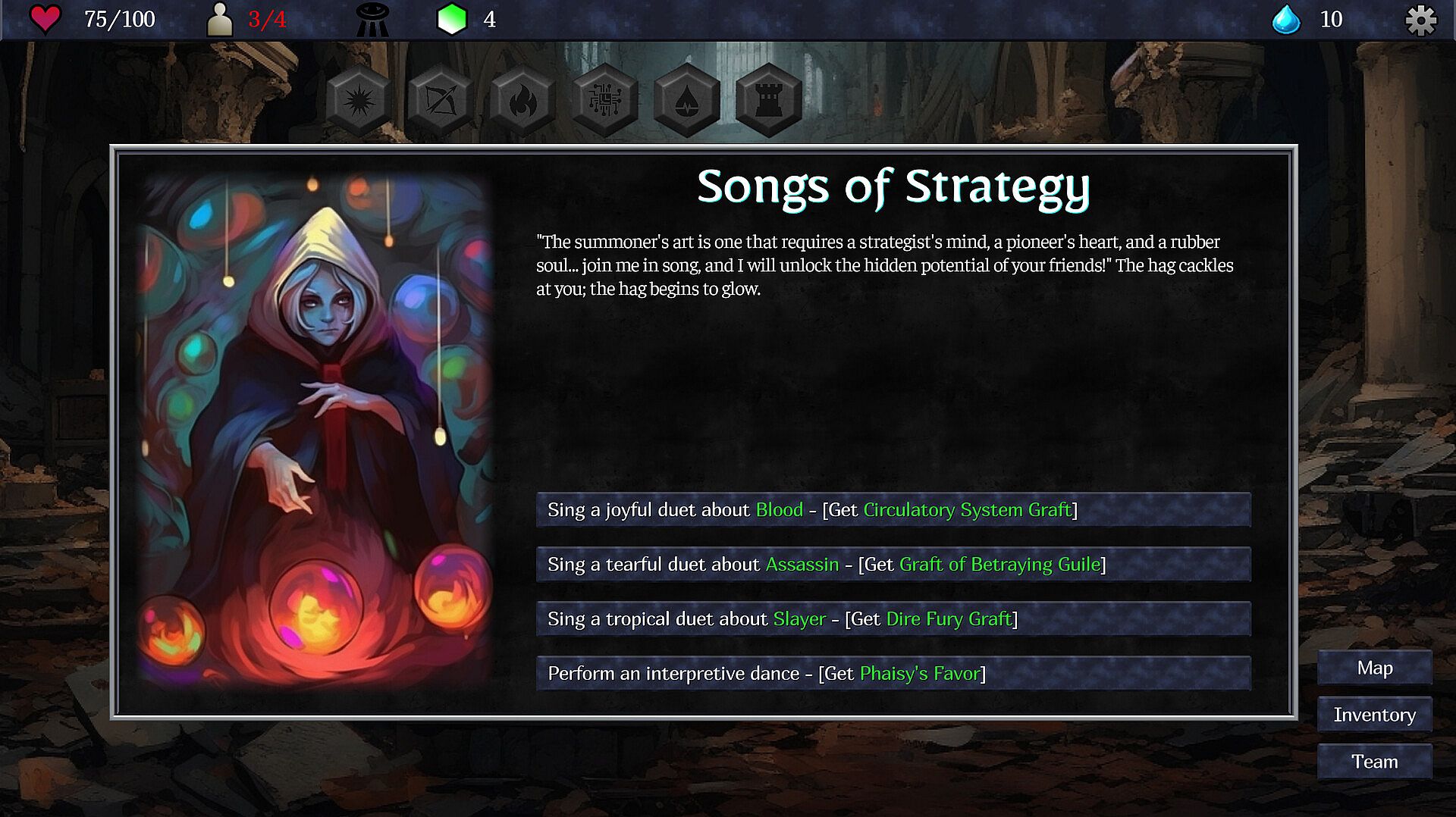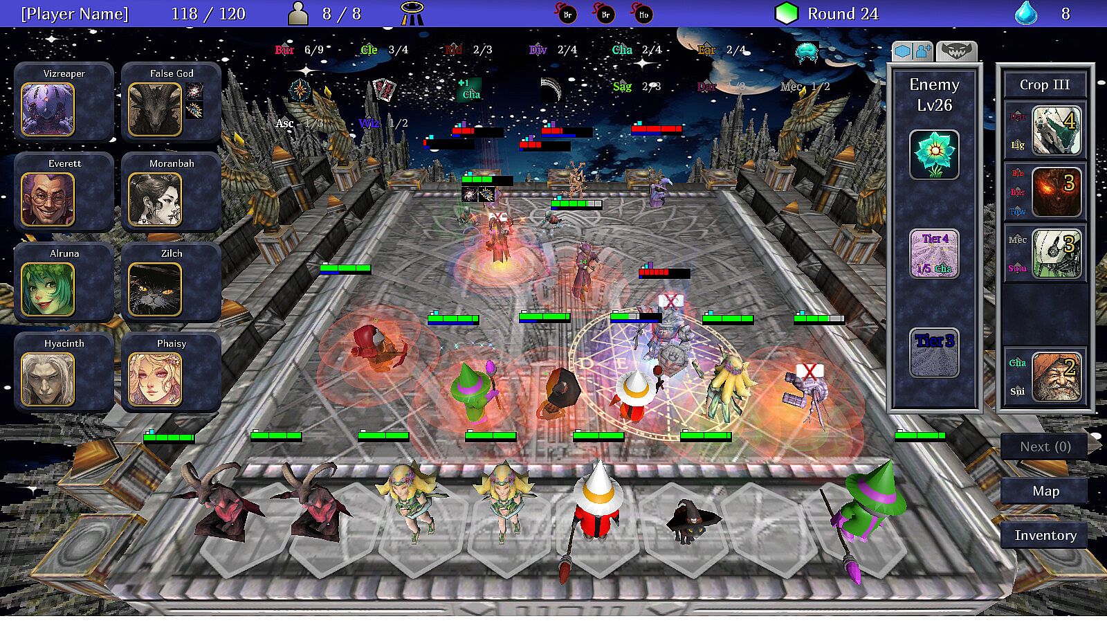 Each round, choose a fight based on its difficulty and rewards. You can survive a few losses, but too many mean game over. Should you chase the loot to build your dream team, or just try to survive?