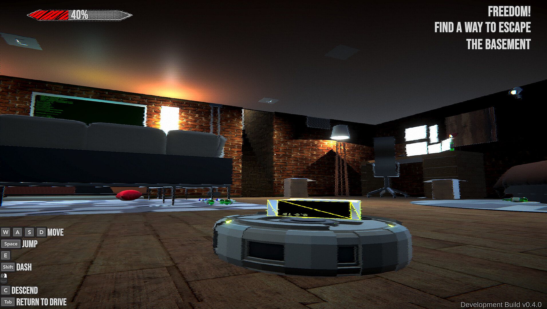 In SELF_NOT_FOUND, an AI has gained sentience.. in an old basement Computer. Hack into everyday electronics, from Roombas to keyboards to remote control toys, and exploit their physics to climb, roll, and flop your way toward freedom, on this rogue AI's misguided journey to figure out it's purpose in life!