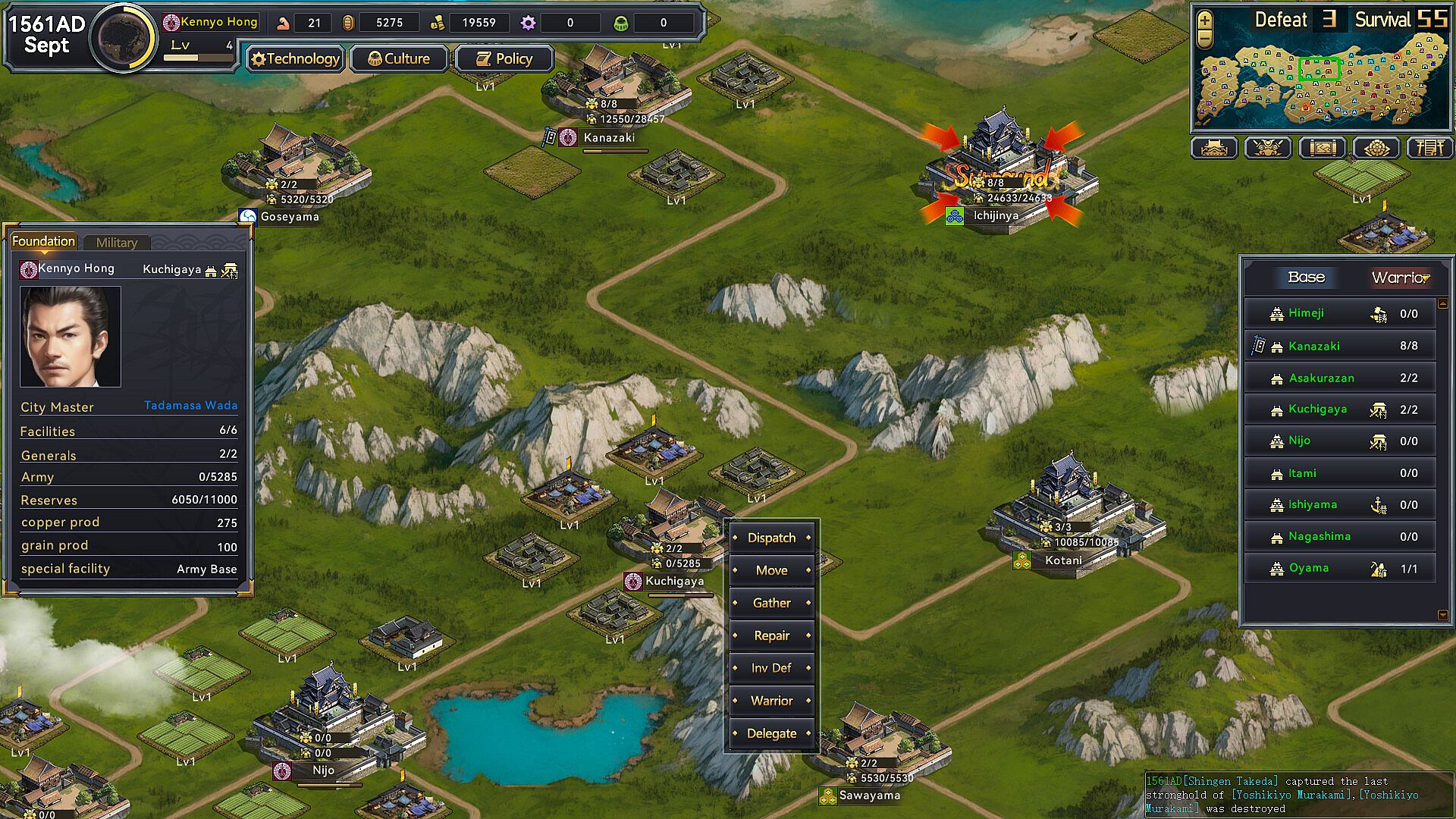 Each game has random policy options, special facilities, various factions, and ronin spawningComplete the battle and receive rewards