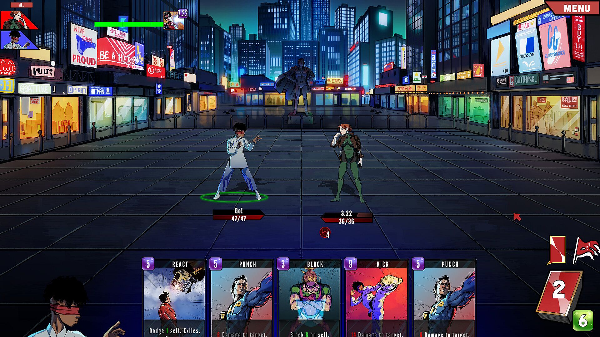 The game is turn based but every card costs time and you will have to wait for it to be ready - When a villain tries to punch, you better already be blocking. Weave in punches while they recover in a tactical battle where every turn matters!