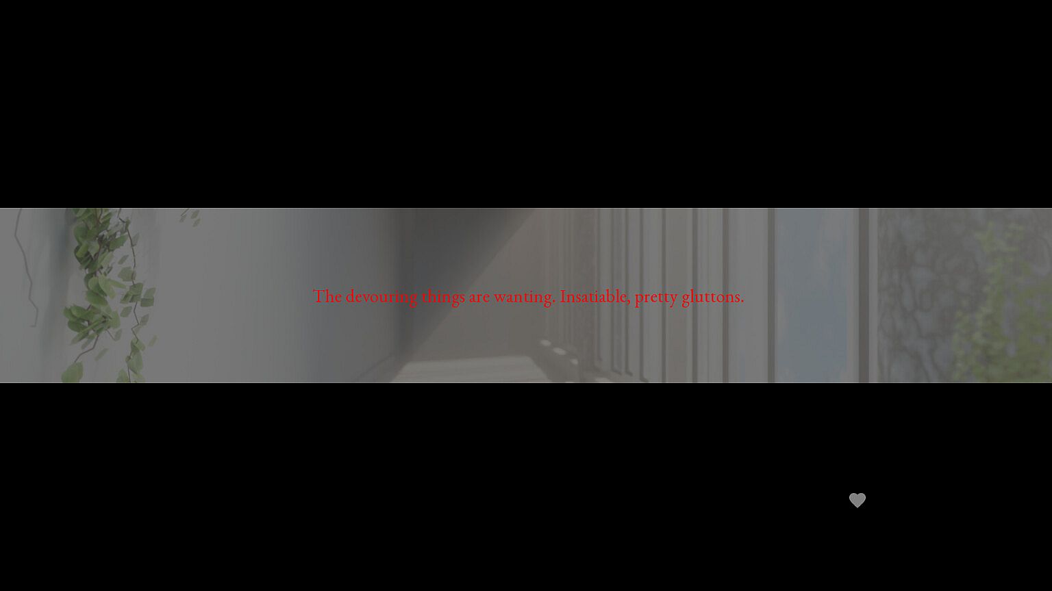 Seraphim Slum is a sapphic liminal visual novel revolving around fallen angels, the horror of intimate relationships, self-perceived sins, predestination, and love conquering self.
