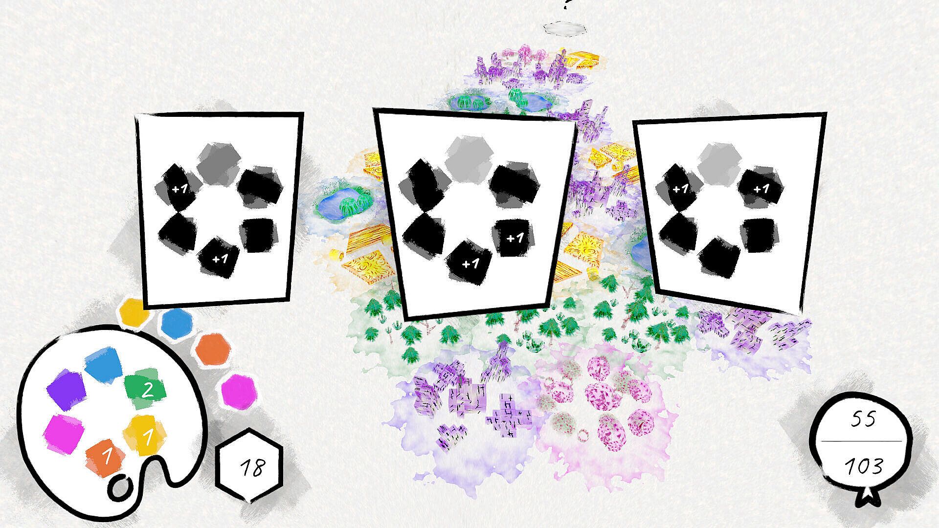 Place the tiles on the field to earn the largest amount of balloons. You get balloons for the combinations of colors that have bonuses on your palette.