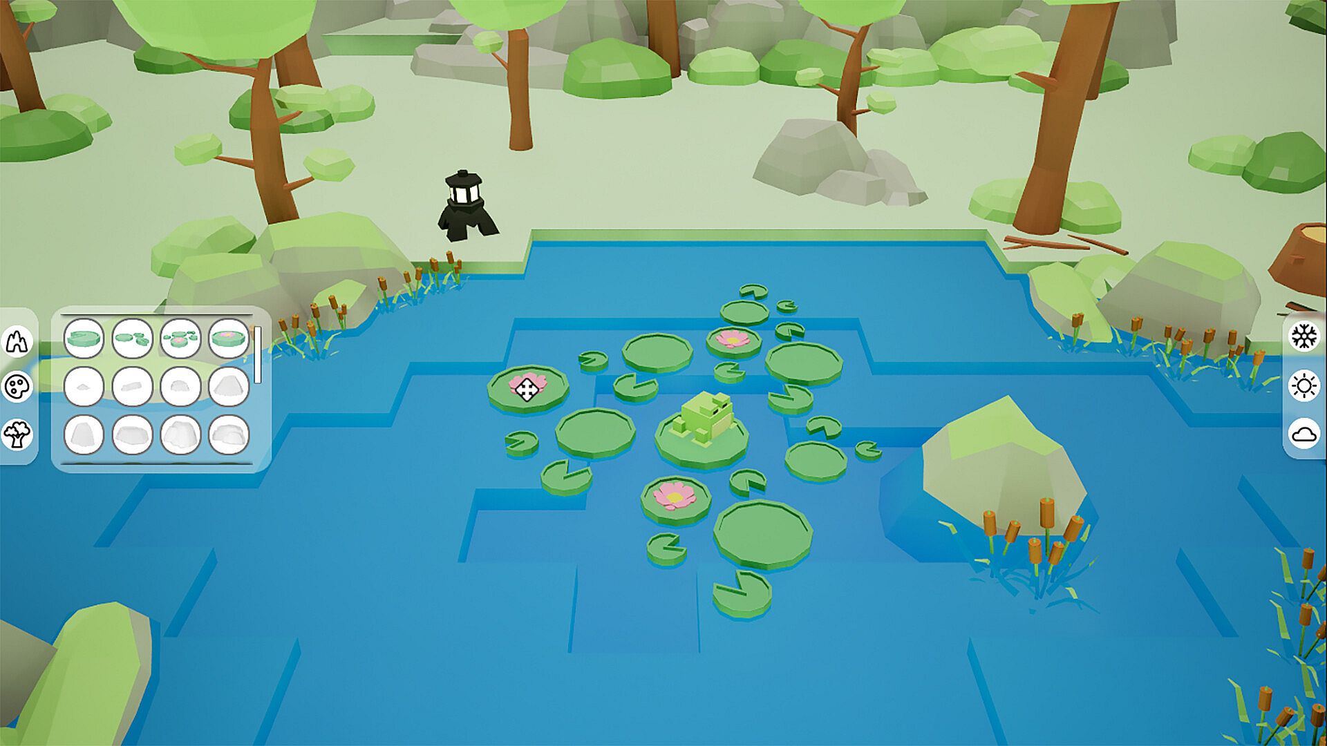 Serene Ponds is a calm, creative sandbox about creating a peaceful pond for wildlife. Shape the land, add decorations and plants, and watch frogs gradually make themselves at home. There’s no rush or failure, just the freedom to create and care for your pond at your own pace.