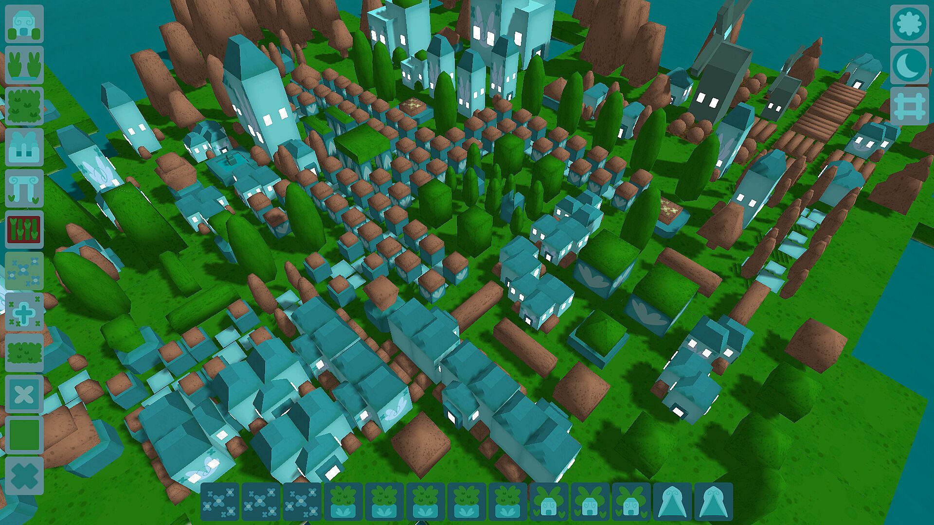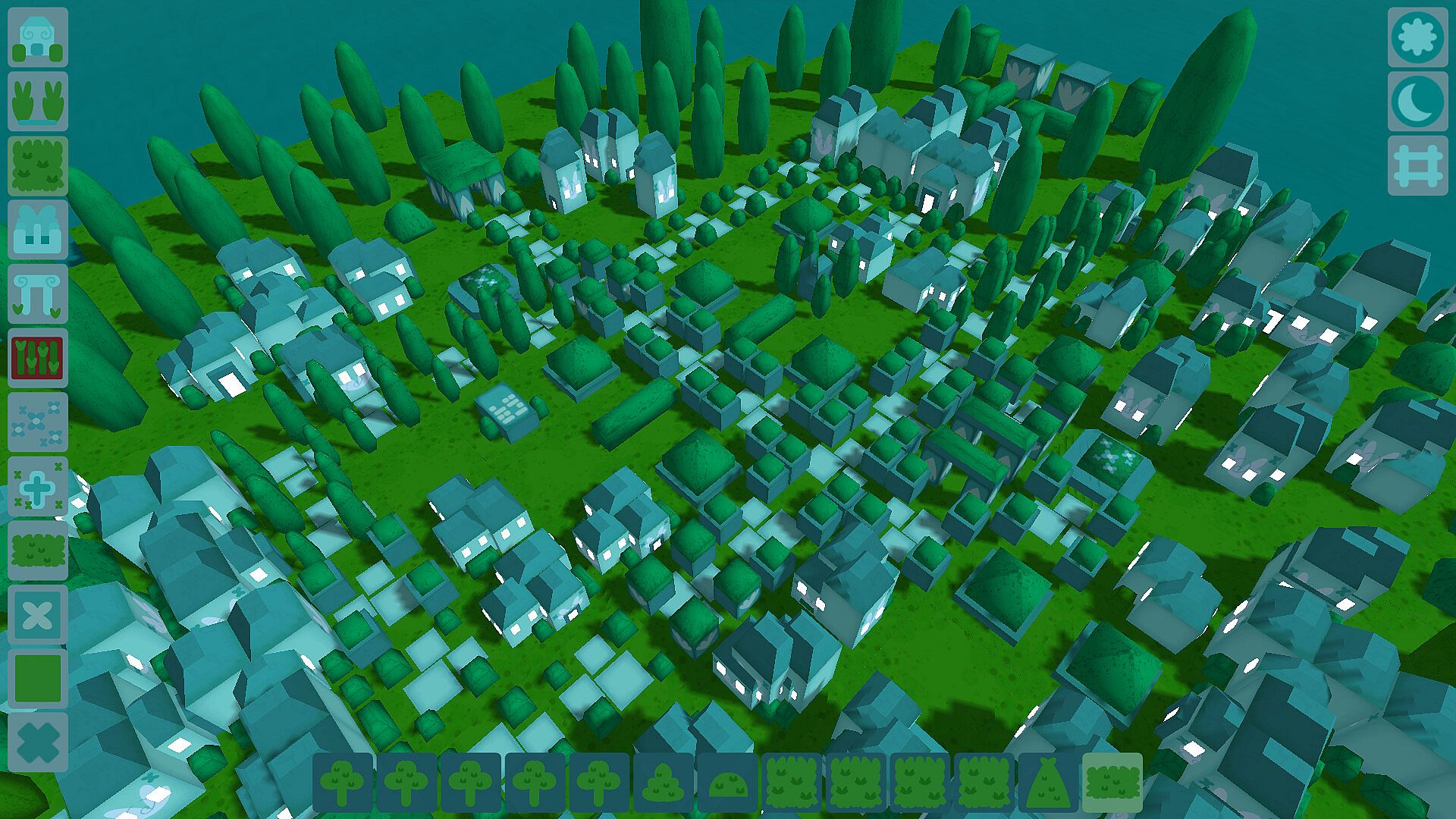 It's a cosy sandbox city building game. Create islands and parks. Increase or decrease the size of buildings in your city. Change the colour of trees and bushes.