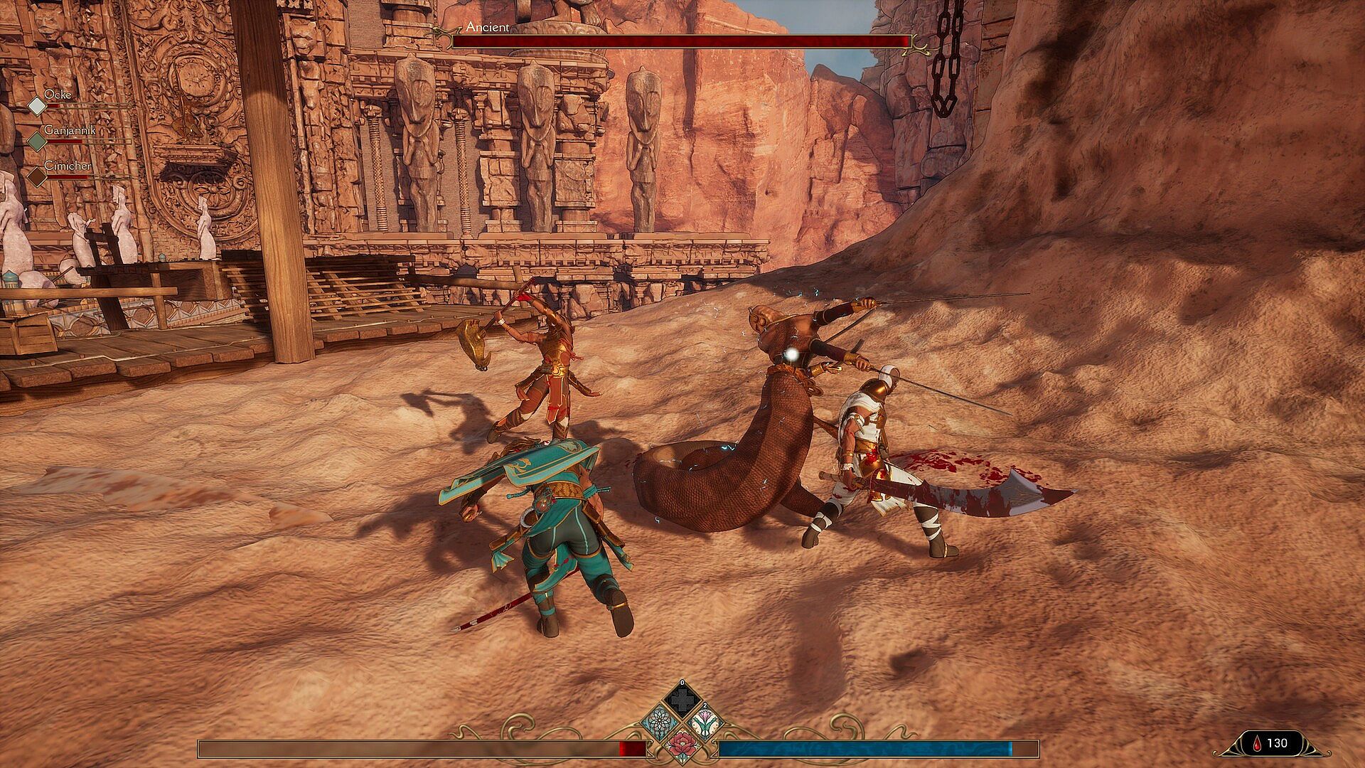 Serpent’s Gaze is a punishing 1-4 player co-op third-person action game where you fight tough enemies and relentless bosses, all while uncovering the secrets of an ancient desert.