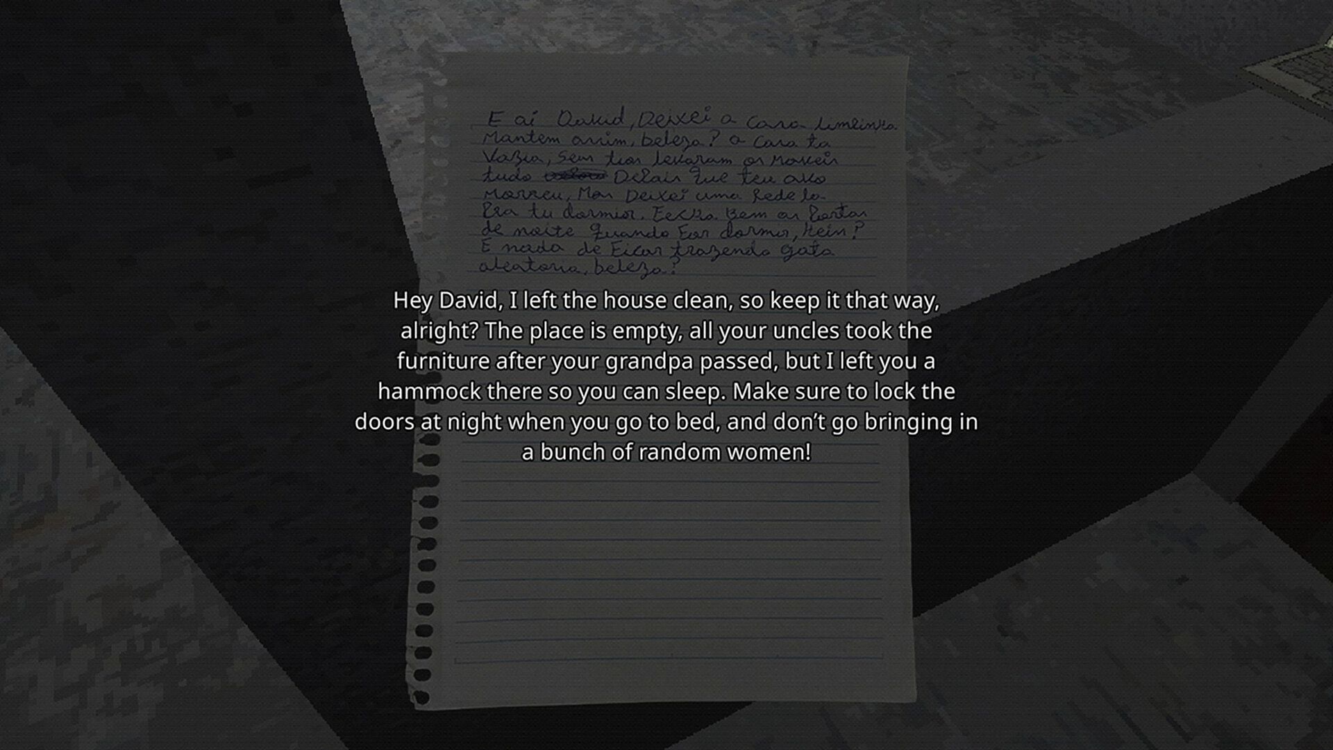 Serra de Deus is a simulation and exploration game with elements of psychological horror. It features a retro aesthetic inspired by the PS1 era. The story takes place in a favela in Rio de Janeiro, Brazil.