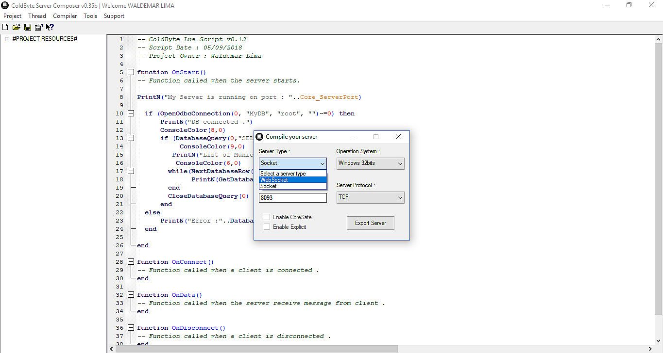 The system has a text editor with Text-Hightlight to make your life easier to program, not counting the "export" tool which makes your multi-platform code (Windows, Linux & Mac) and multi-listener (the same code being for WebSocket and Socket) .