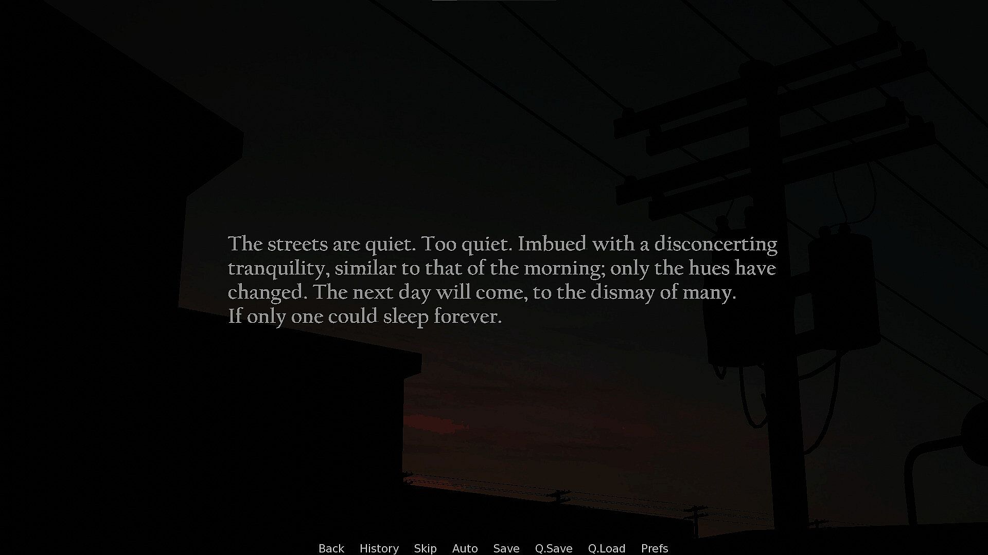 Set Yourself on Fire is a linear visual novel about decay and inconsequential love.