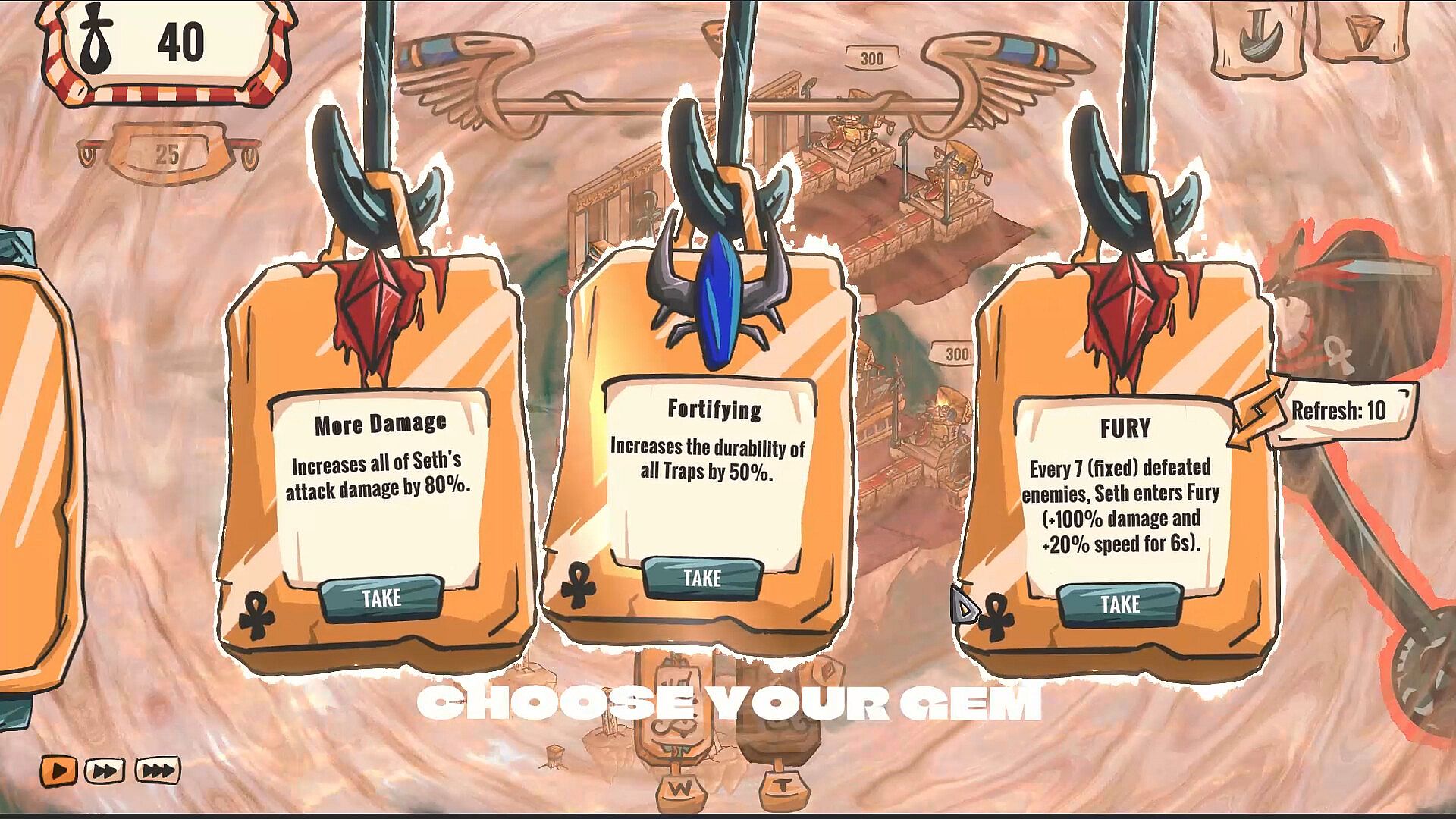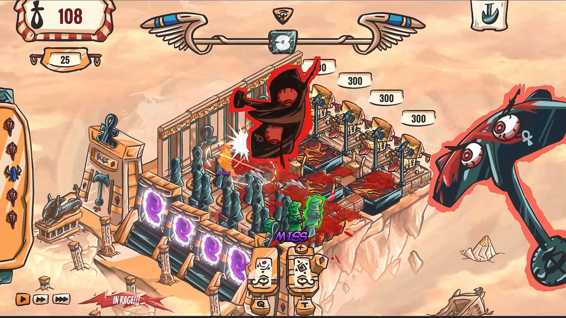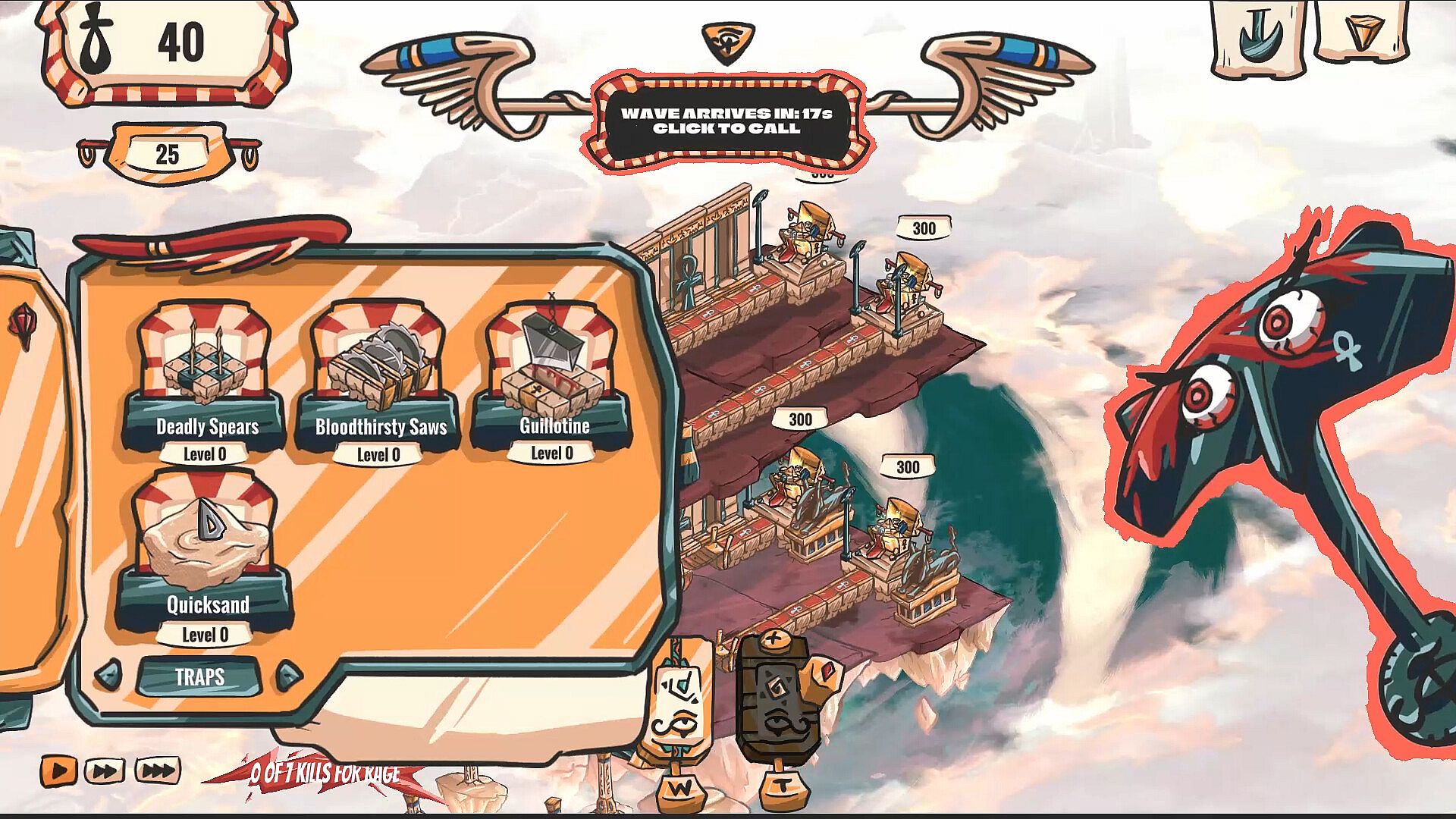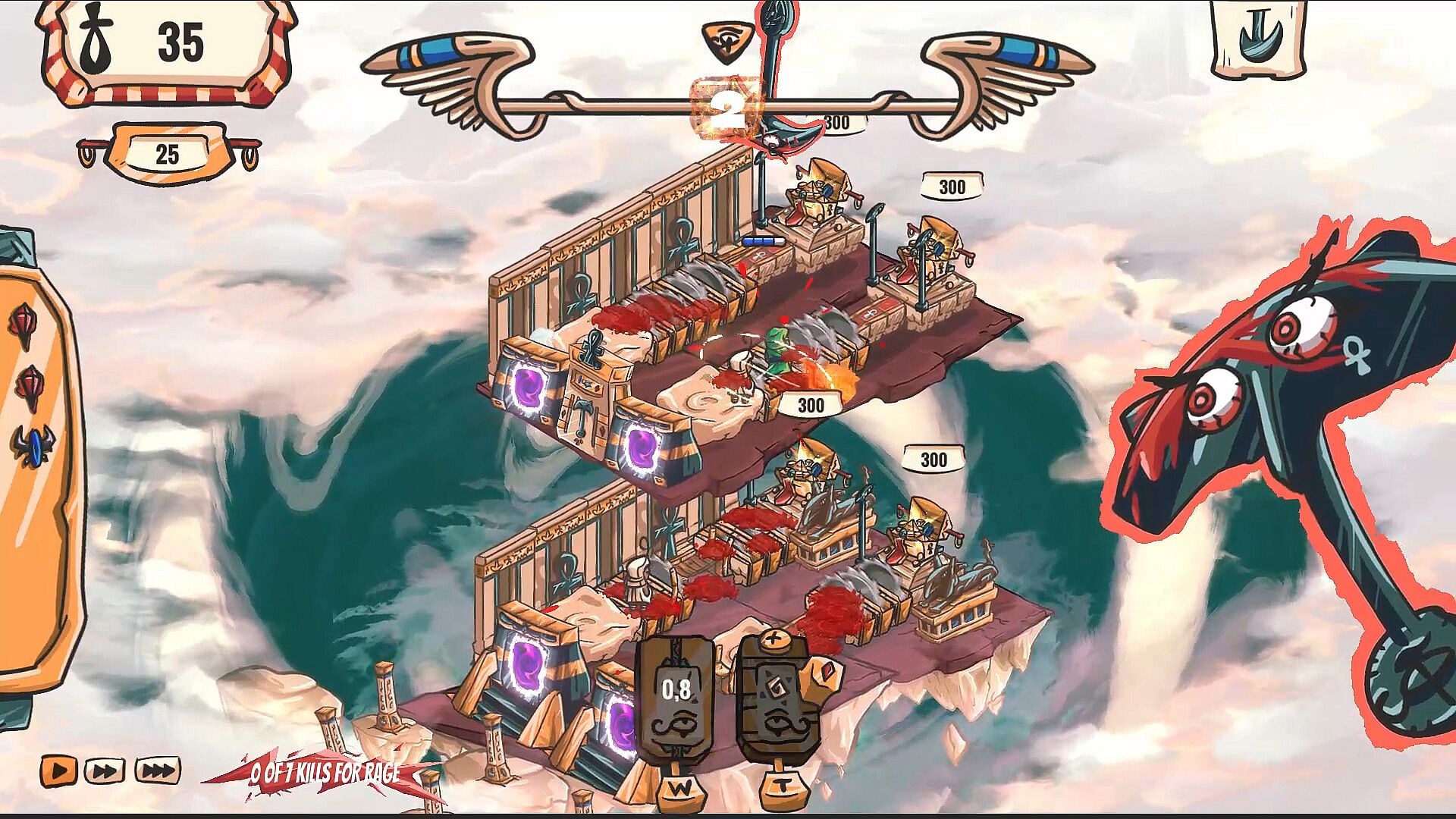 Seth, the god of chaos, has been captured by Horus and is now stuck in a holy guillotine in the middle of the desert. But that won't stop you from killing everyone! Place deadly traps, cast divine powers, and curse treasures to wipe out wave after wave of Horus' minionsāand turn the sand into a bloodbath!