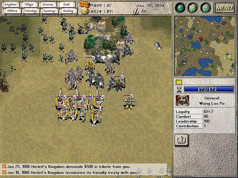 A long, long time ago, when people lived among gods and monsters, seven kingdoms struggled for rule over the land. Lead one of those civilizations to glory through sophisticated trade, diplomacy, espionage and conquest. Choose from one of seven cultures: Greek, Persian, Viking, Norman, Mayan, Chinese and Japanese and compete for domination.
