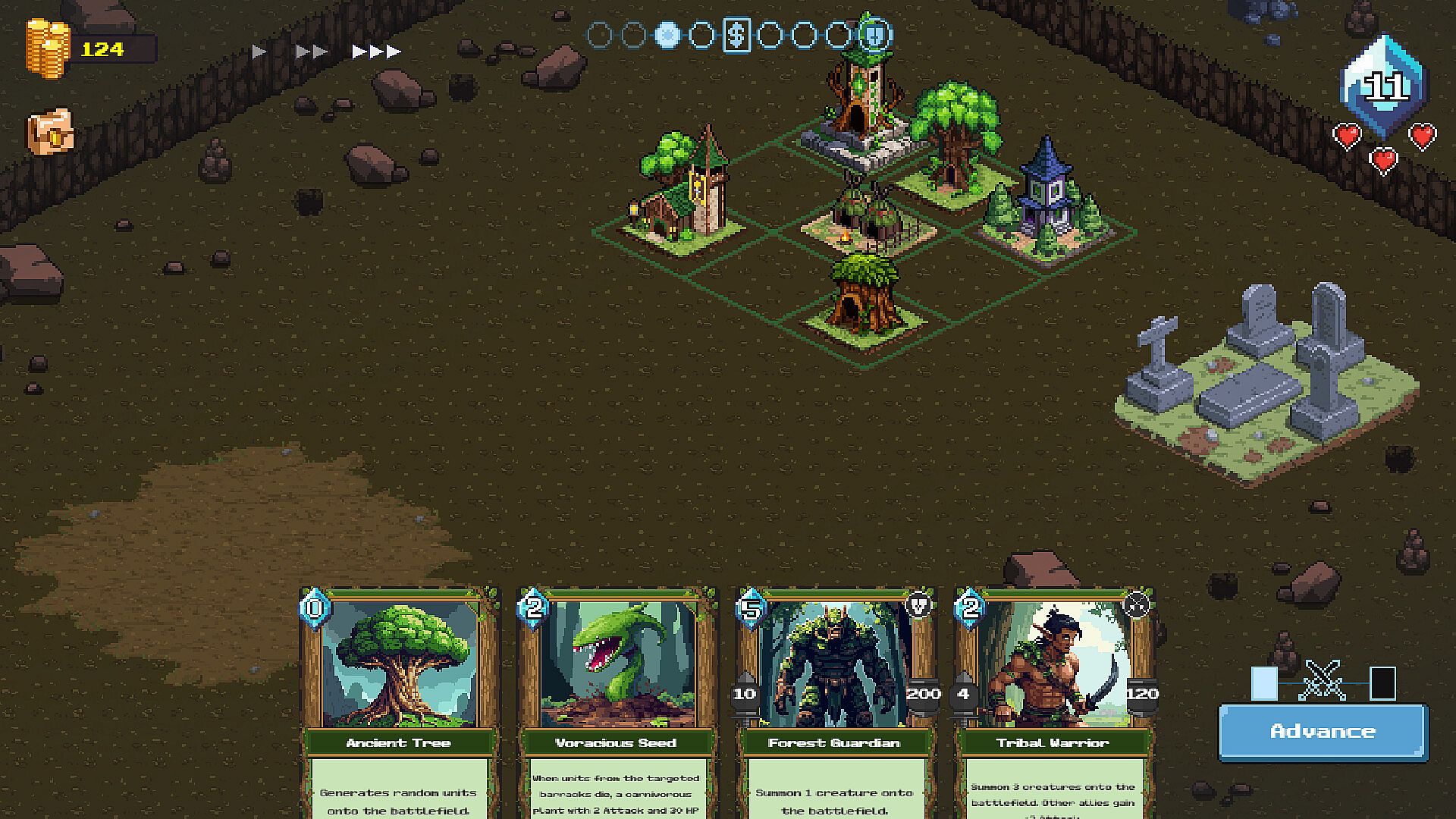 • Each card directly influences the battle, buffs, strategic abilities, and precision towers.