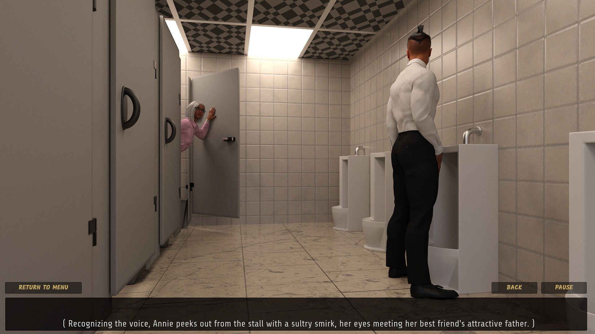 An erotic click-through VISUAL NOVEL featuring HD graphics, and realistic-looking characters.