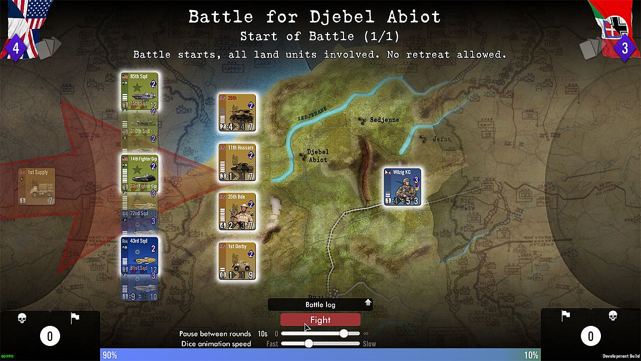 Scenario durations last from 2 turns (for the smaller ones) to over 30 turns, each representing a one-week period between mid November 1942 to late June 1943. One player represents the German and Italian units (land and air) of the Axis in Tunisia, while the other commands an array of American, British, and French troops fighting for the Allies.