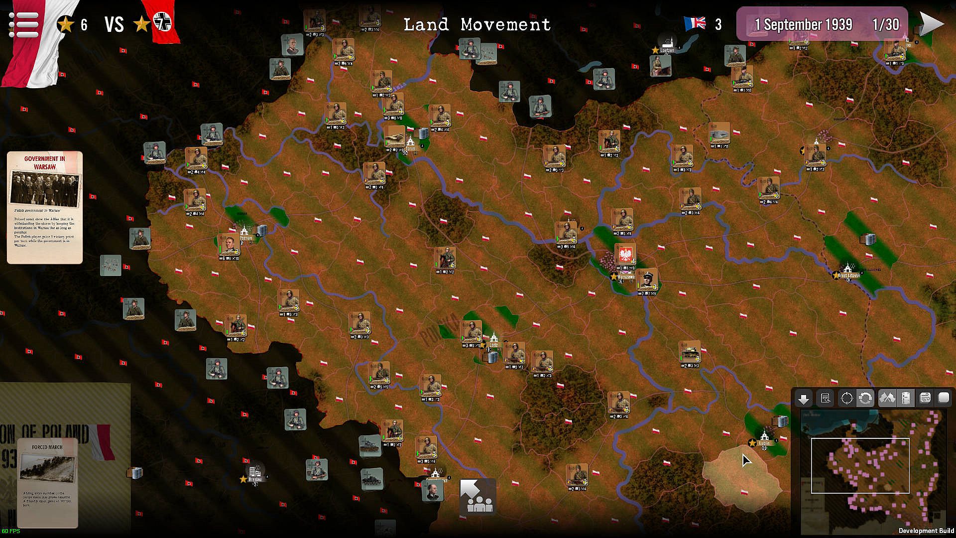 Geographically, Poland remains a vast plain where obstacles are rare, with the exception of the major rivers. The lines of defence therefore had to be located mainly on these water crossings, which provided significant defensive bonuses during battles. But with their mobility and their operational and tactical skills, the Germans will try to prevent the Poles from forming viable defence lines.