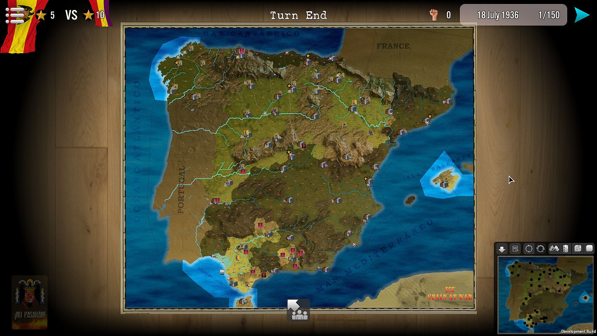 The game covers the whole war from 18th July ’36, using a system of weekly turns. As the Nationalist you have to bring to the Peninsula your powerful units of the Africa’s army and take control of the key cities to force the Republic to surrender. As the Republican player you must delay the initial progress of the enemy and meanwhile start building the Popular Army in order to be ready to face your opponent’s regular army, and in particulars its veteran units.