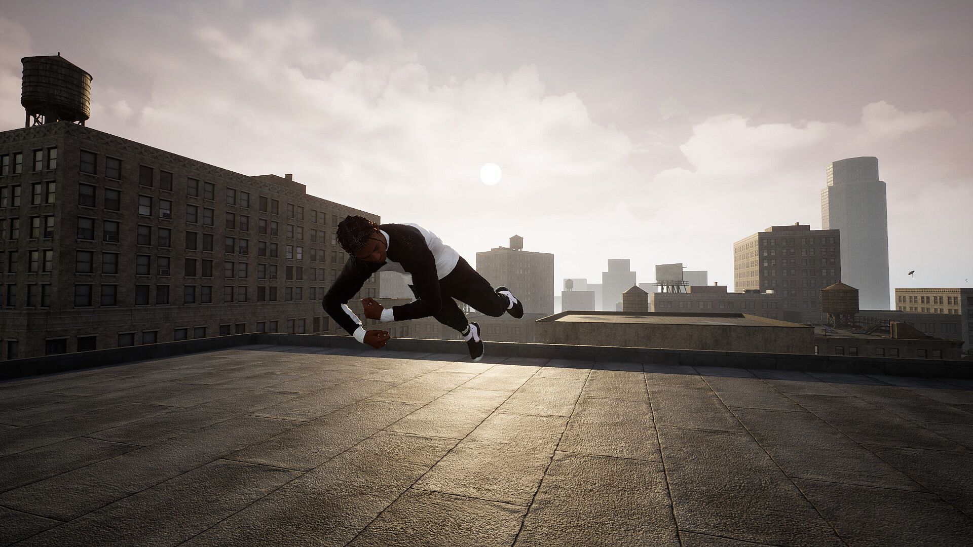 City for parkour — move across rooftops, walls, and streets, finding your own routes.