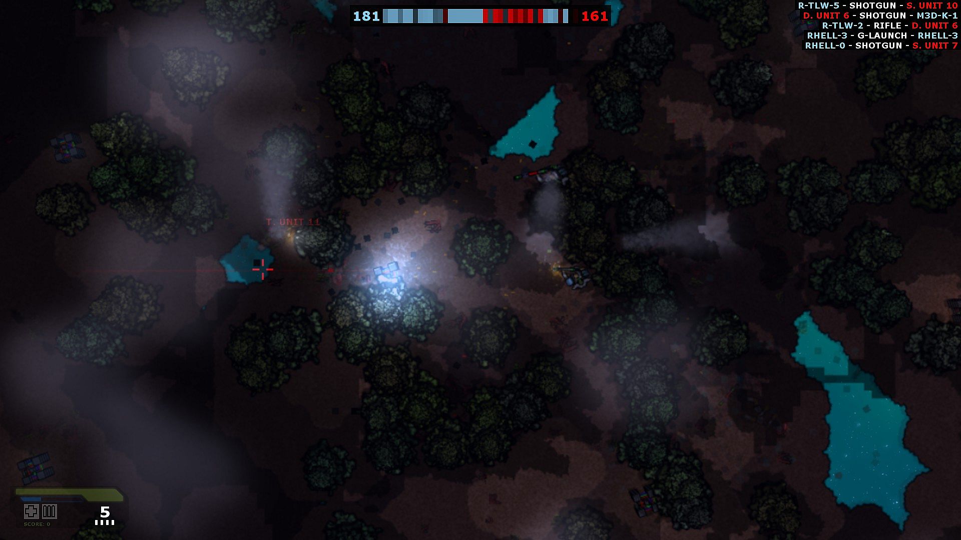 Top-Down Shooter, configured for team play in completely destructible randomly generated world, consisting of several layers.
