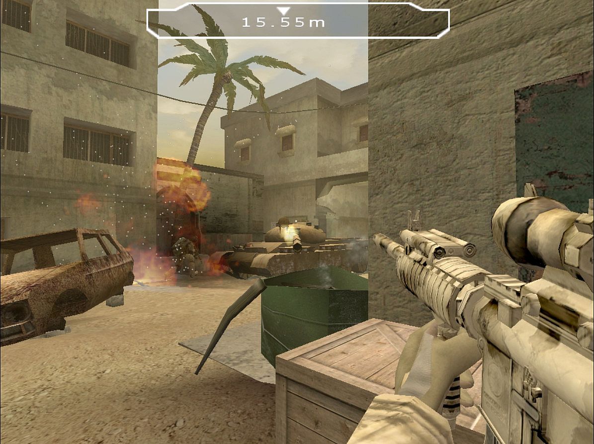 Race against time and terrorism as a member of the elite counter terrorist team in this all-out first person shooter. From the hostile streets of the middle-east, where danger can come from any direction, to the landmarks of a major European city. Your duty is to hunt down a terrorist overlord carrying a nuclear device before untold disaster is unleashed. Mix all-out assault with stealth infiltration in your mission to prevent disaster.