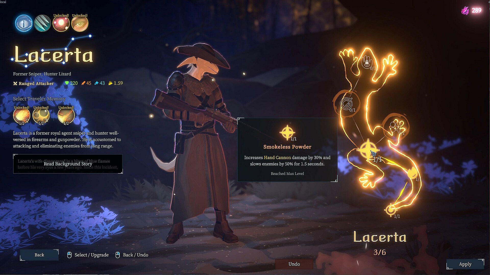 8 playable Travelers with unique combat mechanics and upgrade paths