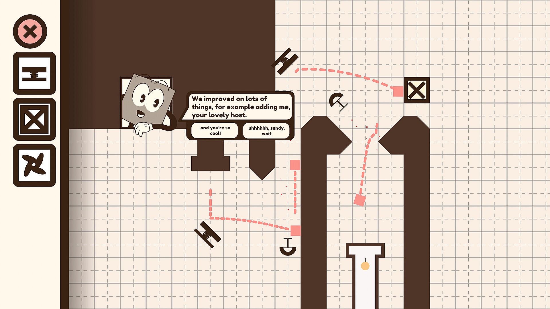 Sendy has graciously volunteered to teach you how to play the game and will guide you through the levels as your new best friend, super fun buddy, loyal confidant, and generous mentor.