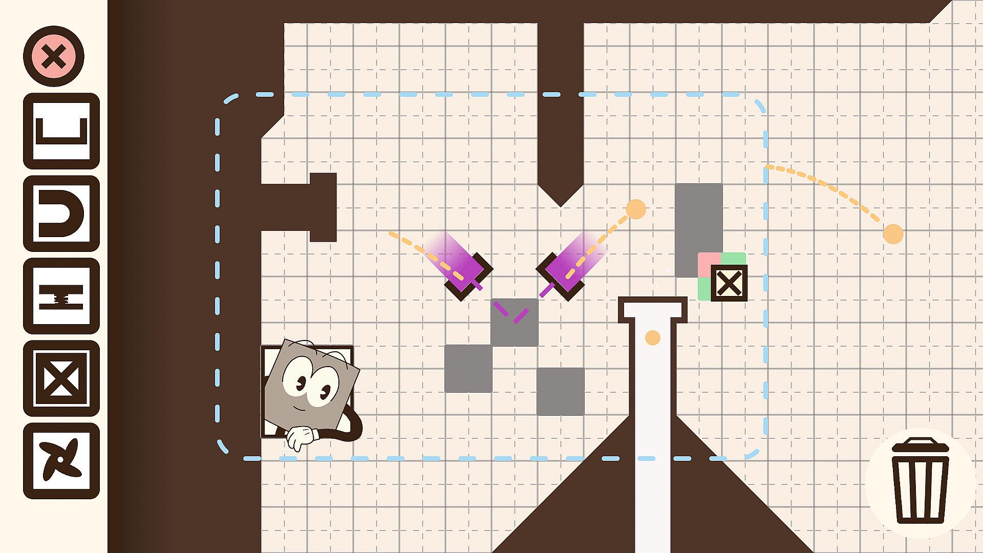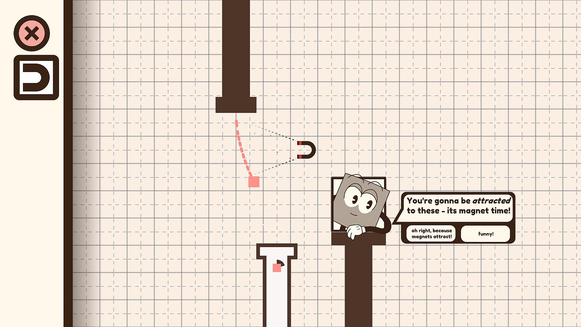 Move the shapes from A to B in any way you want - elegantly bounce shapes in beautiful arcs, or chaotically toss them across the level, but don’t hit Sendy! Share your solution with GIF capture to showcase your talents.