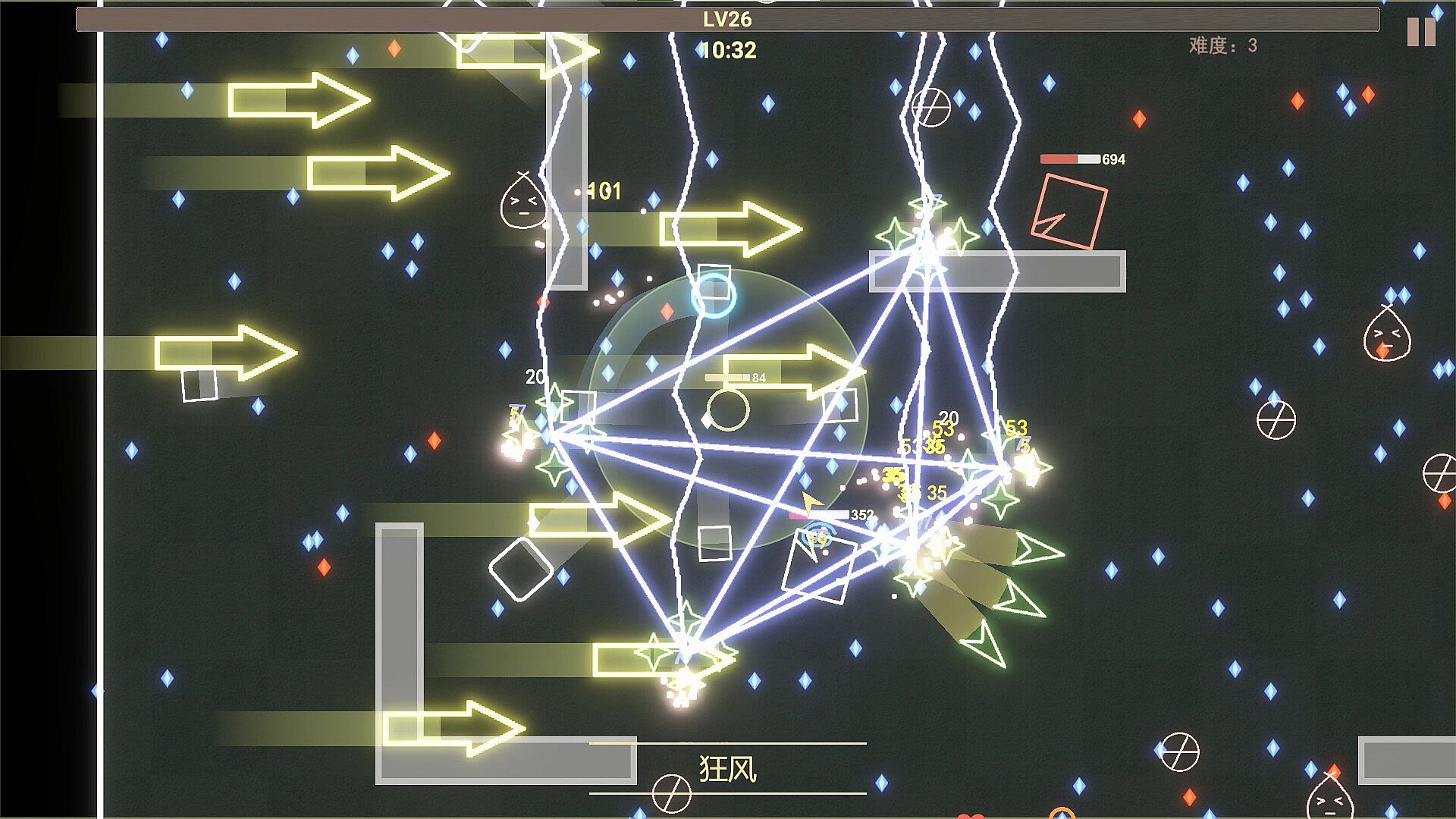 - This is a survivor like barrage shooting game. You need to choose weapons and enhancements to defeat waves of enemies, and persist for 20 minutes to achieve victory.