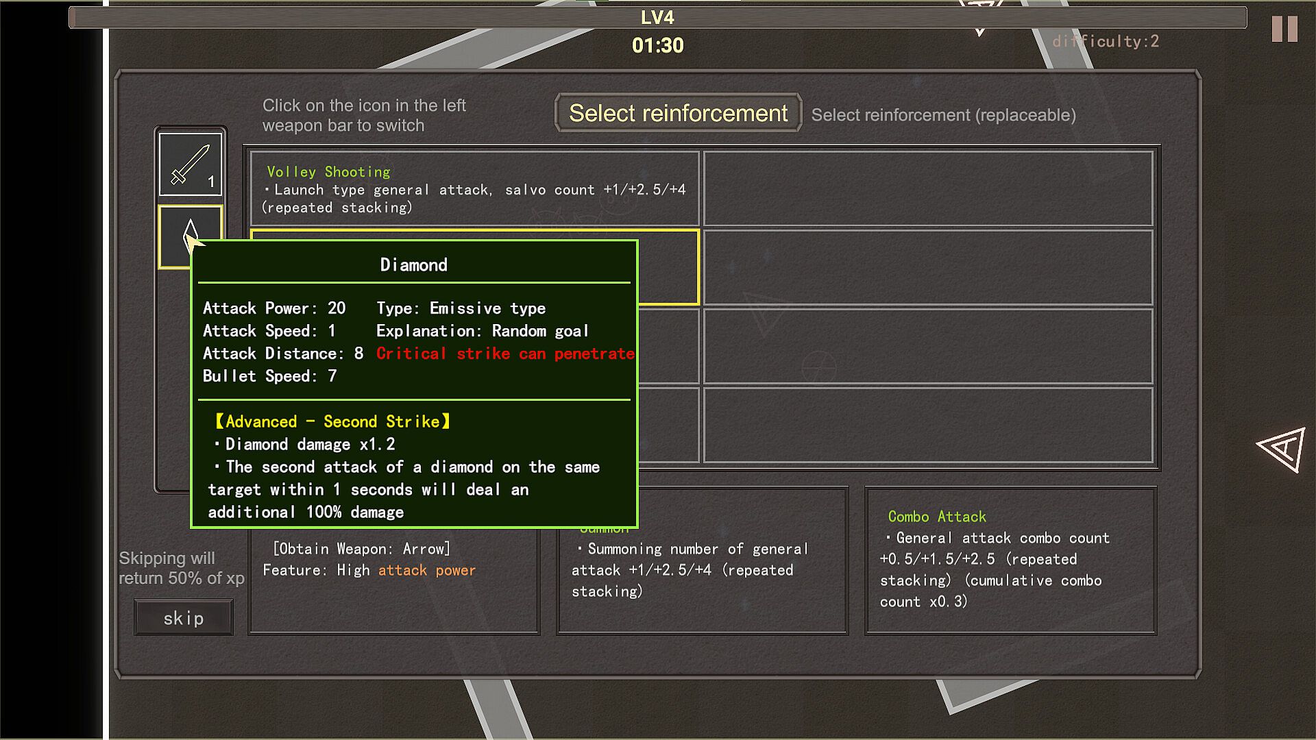 - Choose up to 5 weapons, each weapon can be freely reinforced 8 times, and after full reinforcement, obtain an advanced effect.