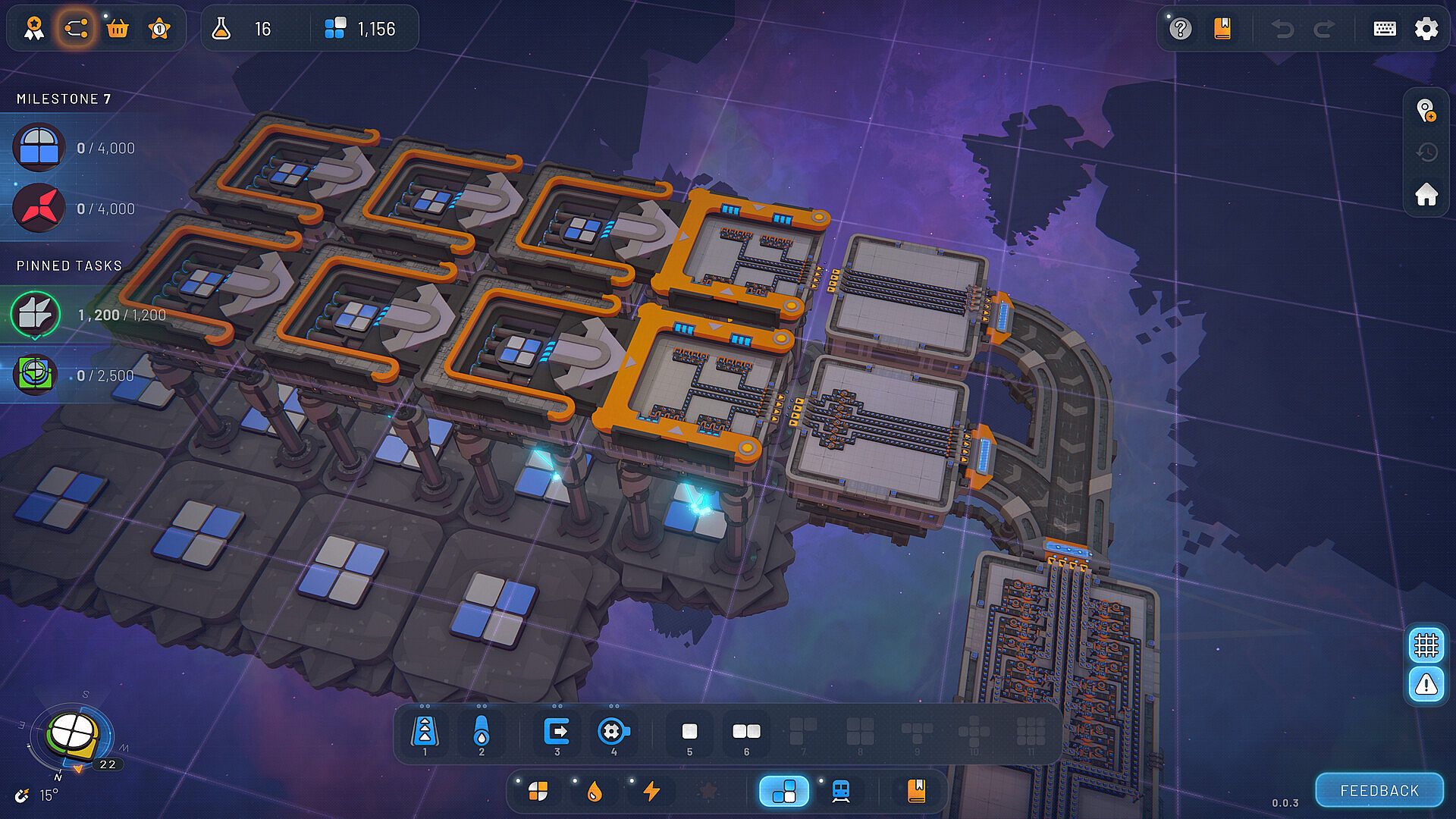 Start your operation from a single asteroid and continuously expand by building new platforms. Unlock new layouts as you progress, and grow from a single belt into a massive multi-station space factory connected by space trains. Design modular blueprintable platforms to build on a massive scale, placing hundreds of buildings with just one click.