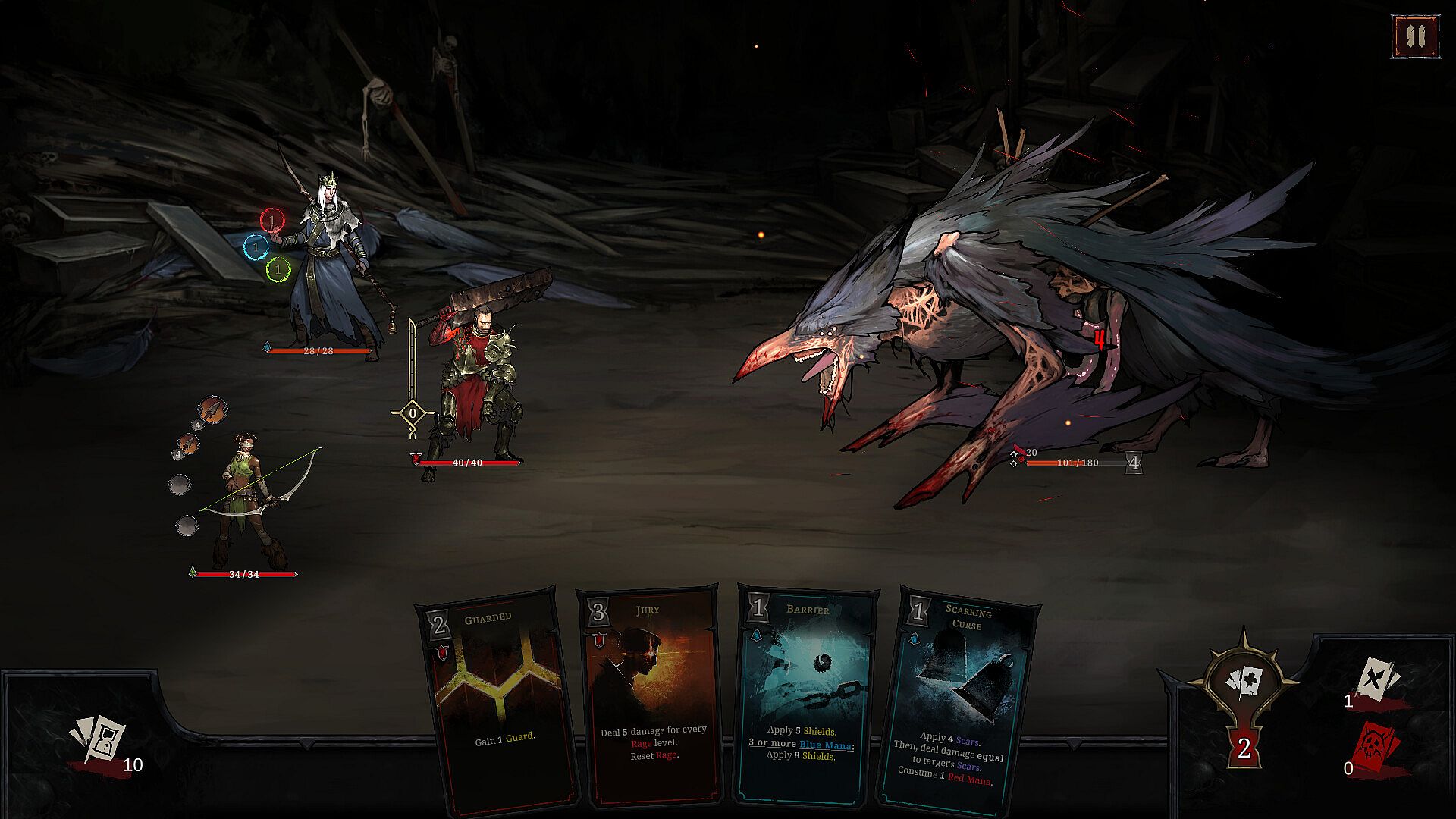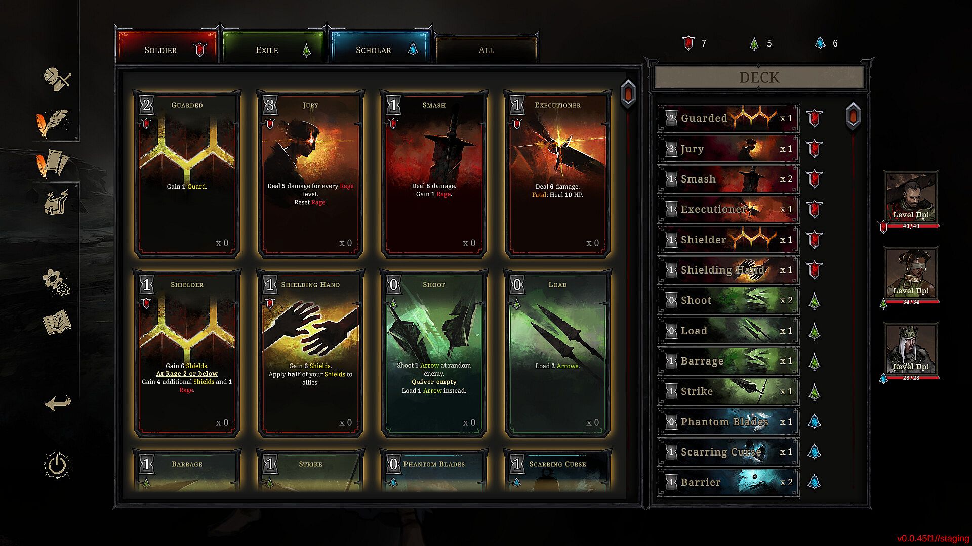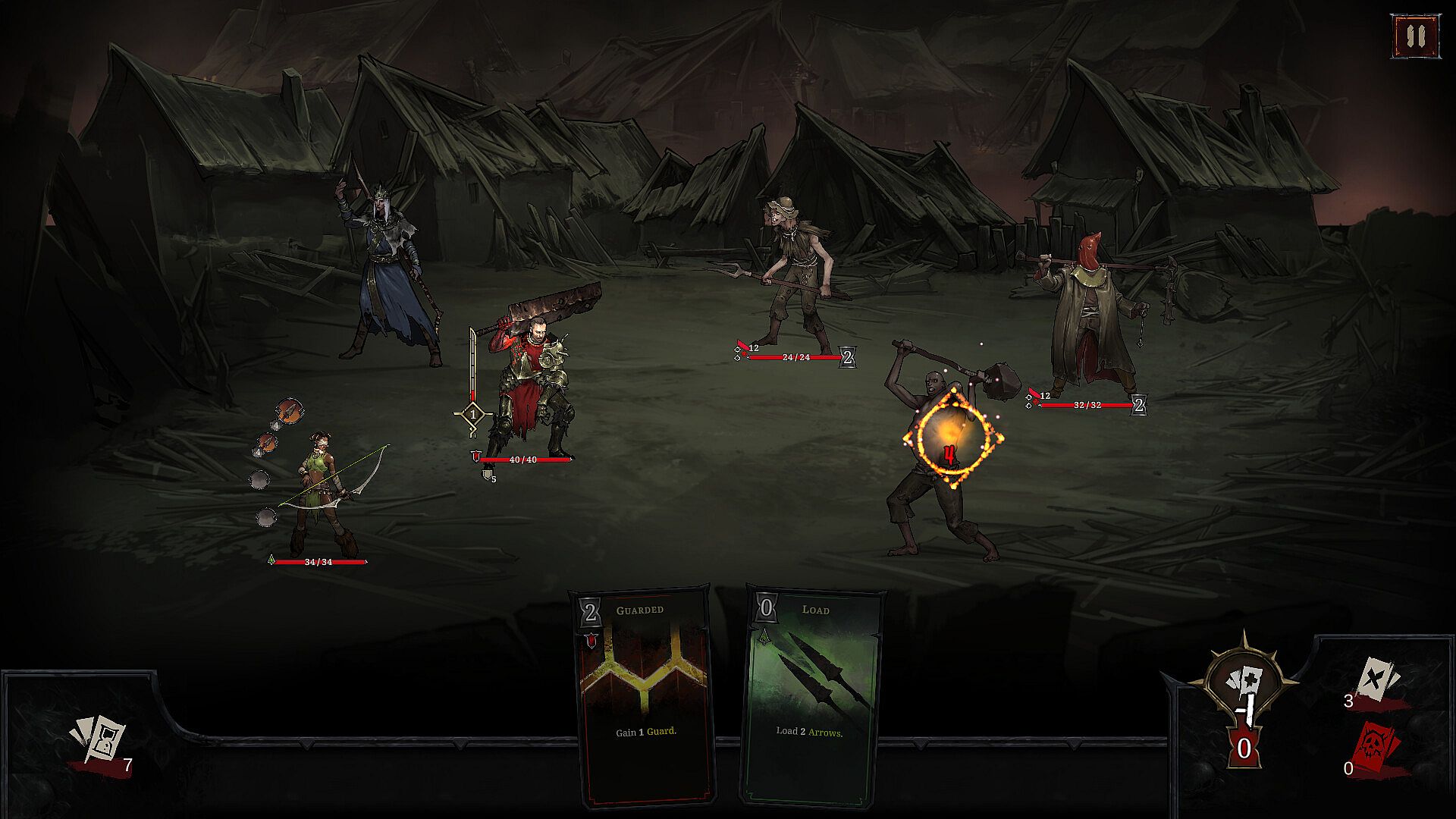 Shards of Order is not just a deckbuilder—it’s a true RPG. Develop your characters through leveling up, skill trees, equipment customization, dialogue choices, and skill checks. Weapons and armor are a vital part of buildcrafting. They define each hero’s playstyle, granting passive abilities and adding unique cards to your shared deck. With only one set of cards across your party, every choice brings impactful trade-offs and gameplay alterations.