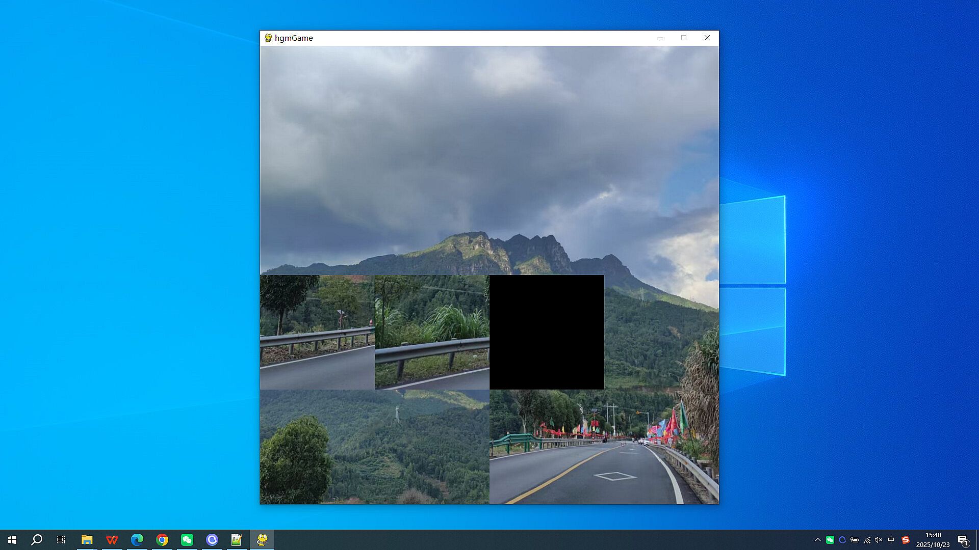 Game steps: Click the left mouse button on the image around the black square, and the image and black square will switch positions. The goal is to assemble all the small images into a complete image. The complete image is as follows: