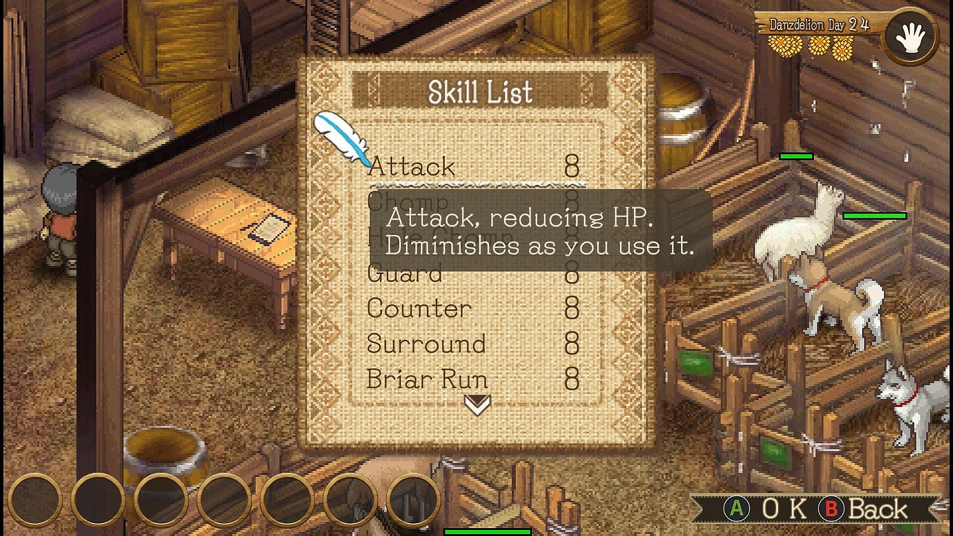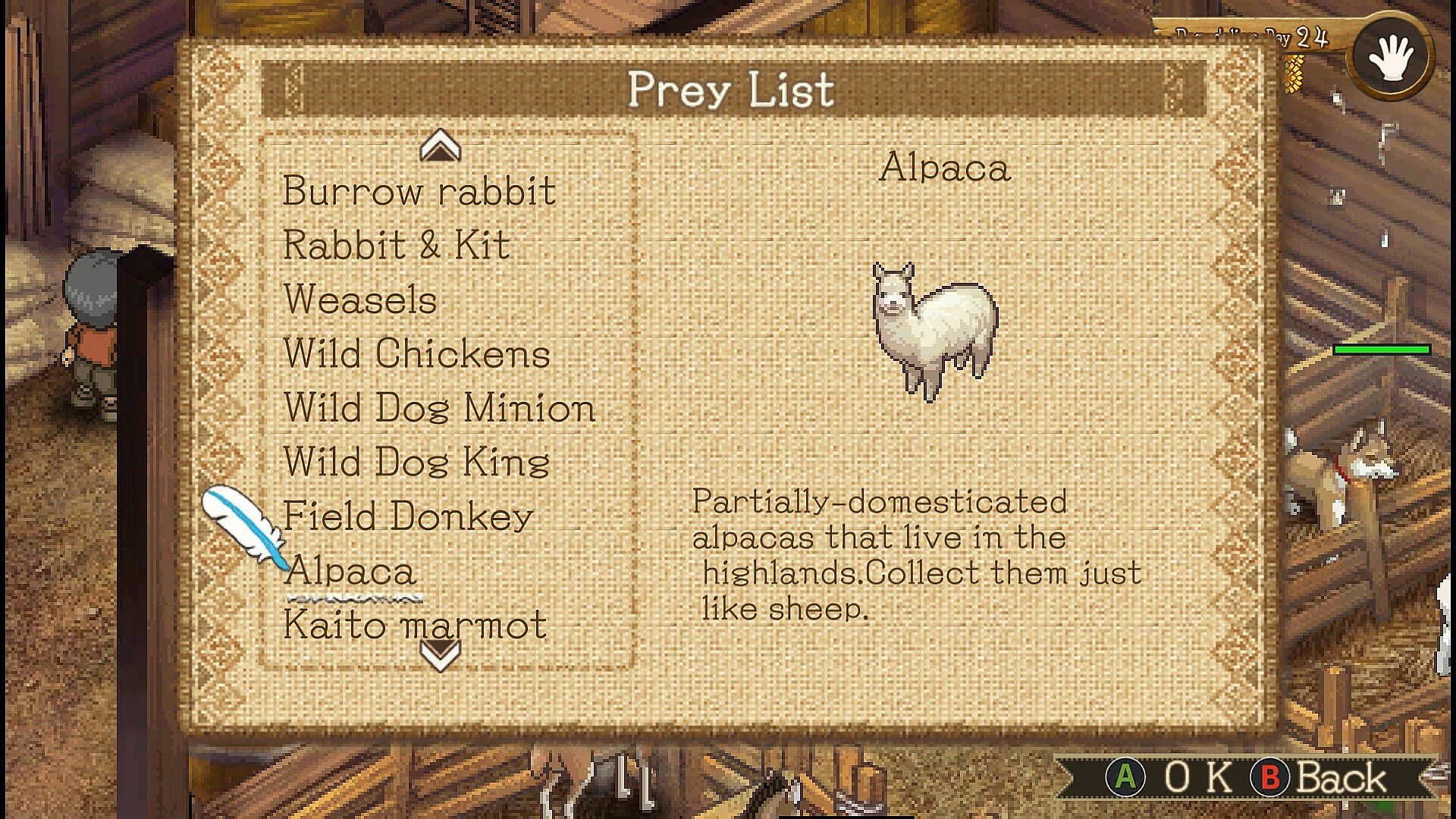The ranch can now be zoomed in and out in four levels. When zoomed out to the maximum, animals and items in the ranch are displayed in dot-by-dot equal size. Breed lots of animals and enjoy watching them move all over the place!