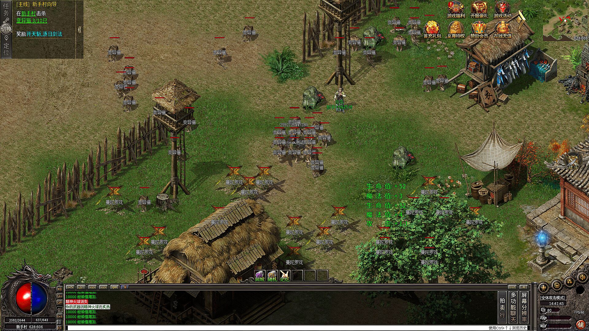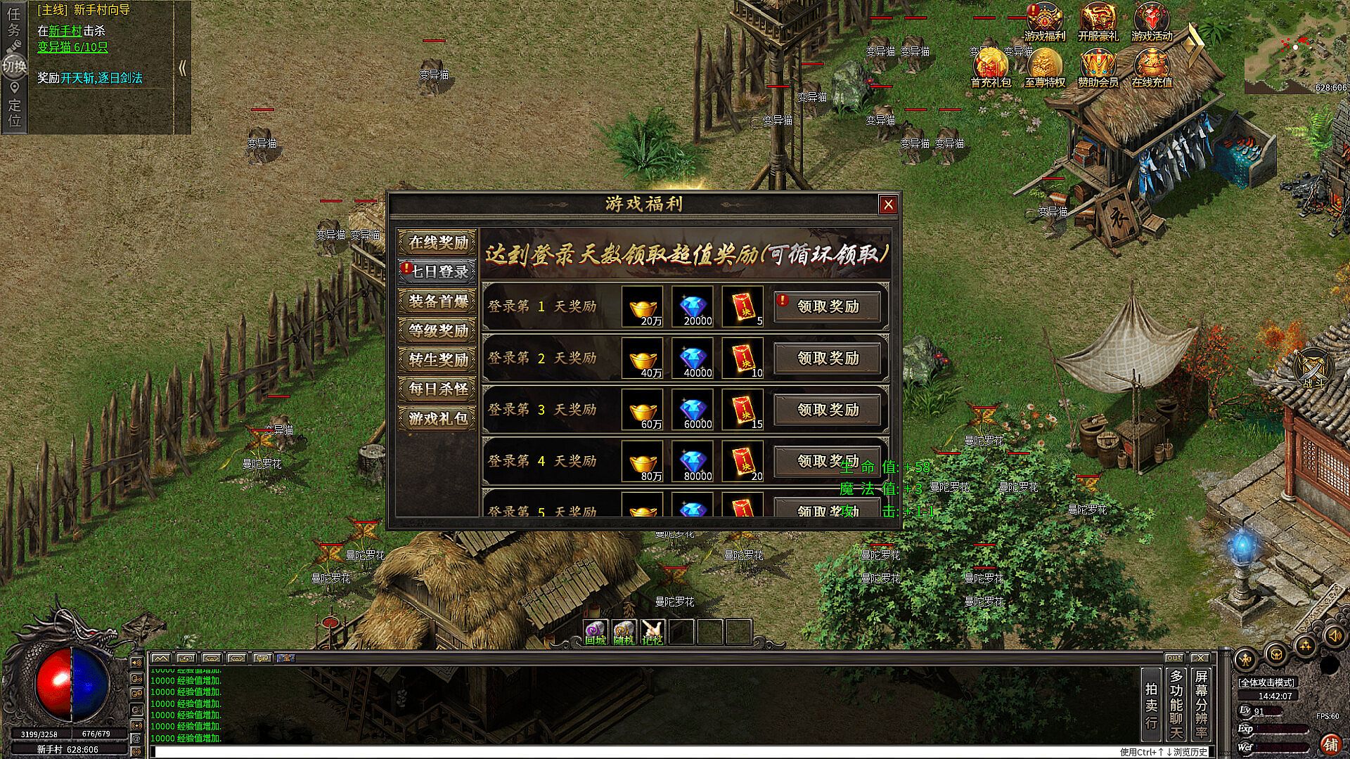 开服第一时间进游戏快速升级,建议充完10元的首充礼包,(背包专属、时装专属、地图传送、以及大量材料货币),打怪可免费升级会员特权,大幅度提升人物属性,快速抢占终极BOSS