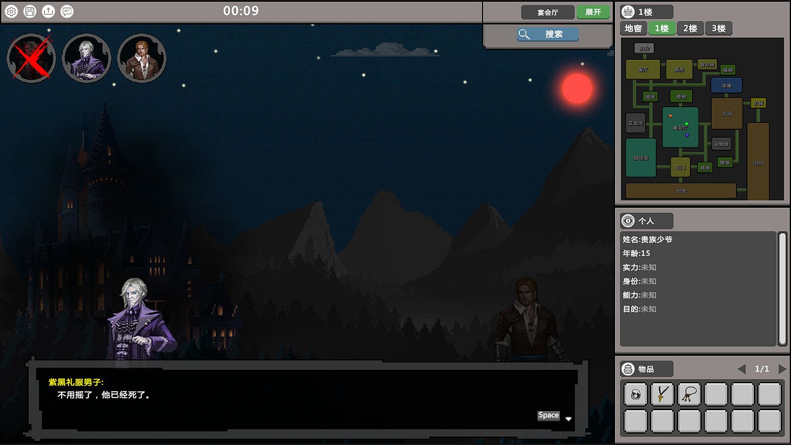 "The Amnesiac: Final Chapter" is a narrative text game. The story takes place in a low-magic world reminiscent of the Middle Ages. In the silent darkness of a decaying baron's castle, lights flicker and a table is filled with sumptuous food. However, the atmosphere is eerily quiet, devoid of the usual sounds of merriment one would expect at a banquet. Instead, there lies the lifeless body of the baron on the cold floor, surrounded by a group of individuals who have just awakened from a stupor, but have lost their memories. Even as traces fade into the night, unable to be extinguished completely beneath the twilight, the truth will inevitably greet the dawn. As for you, you will become a wisp of a soul, embodying any one of them, and delve into their respective stories and secrets.