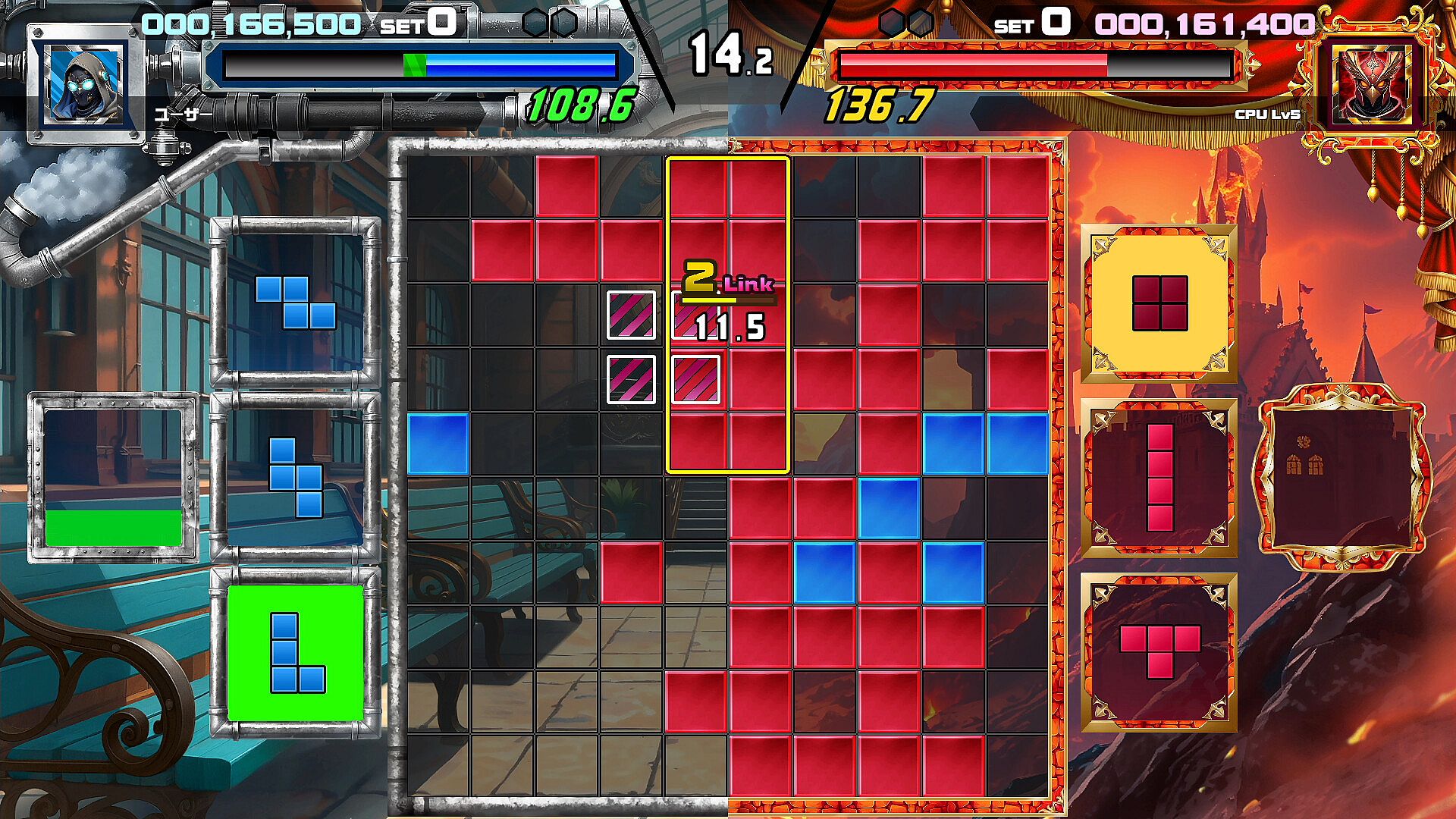 Connect links on a 10×10 board while executing real-time attacks, disruption, recovery, and special moves.