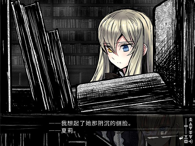 The player assumes the role of Mary Clarissa Christie, the protagonist of Shikkoku no Sharnoth. Mary has heterochromia eyes, her right eye is gold while her left eye is blue. She originally had blue eyes but her right eye changed colours one year prior to the game's events and she has been seeing strange visions since.